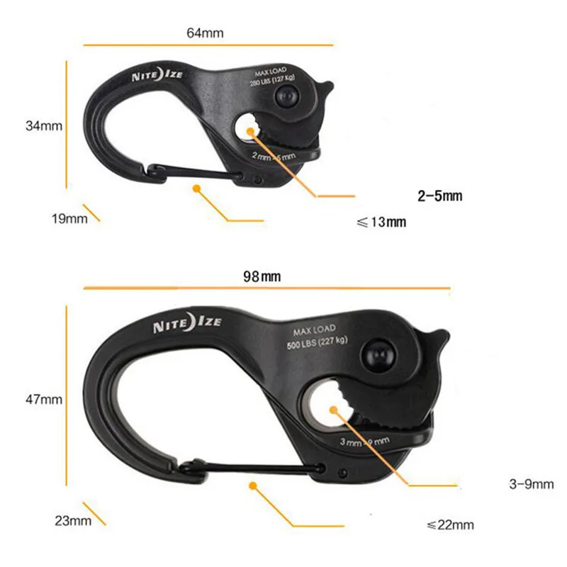 Большой (алюминий), Максимальная нагрузка: 127 кг, устойчивость к трещине 380 кг. Подходит для веревки 3 мм-9 мм.