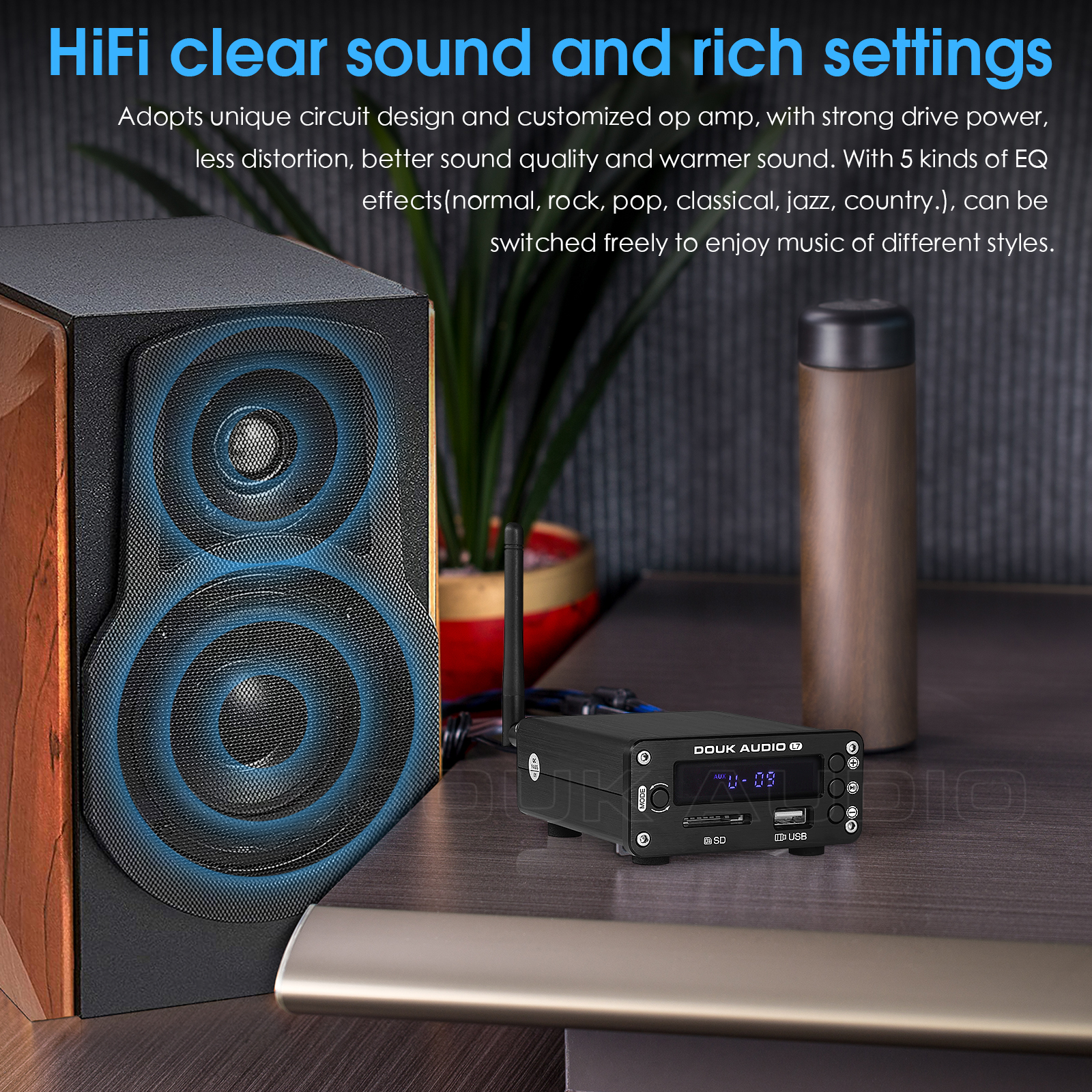• Чистый звук HiFi и богатые настройки: имеет уникальную схему и индивидуальный операционный усилитель, с высокой мощностью привода, меньшими искажениями, лучшим качеством звука и более теплым звуком. С 5 видами эффектов эквалайзера (нормальный, Рок, Поп, Классика, джаз, кантри), можно свободно переключать, чтобы наслаждаться музыкой разных стилей.