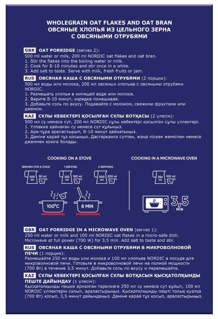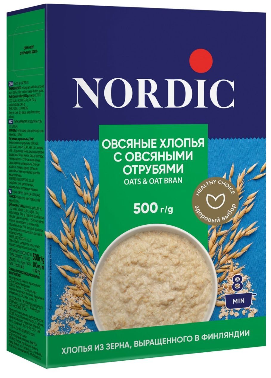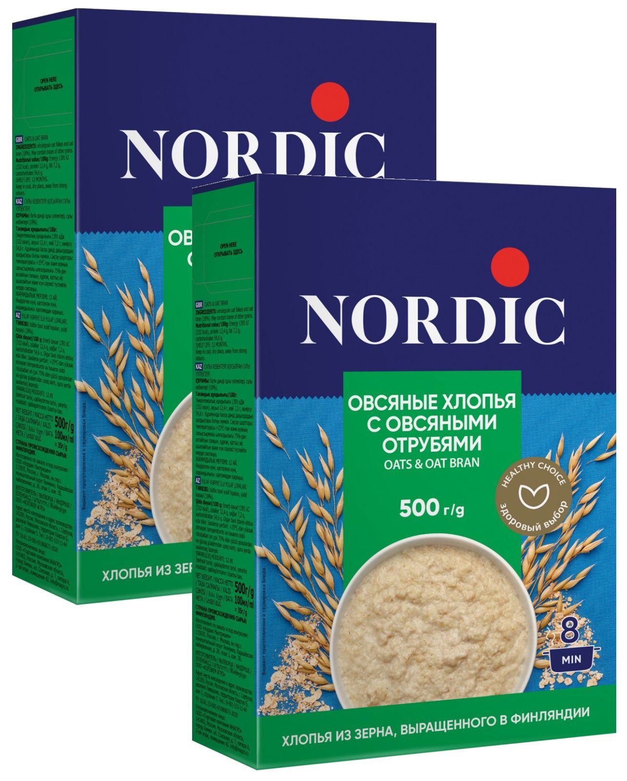 Nordic Овсяные хлопья с овсяными отрубями, 500г х 2шт