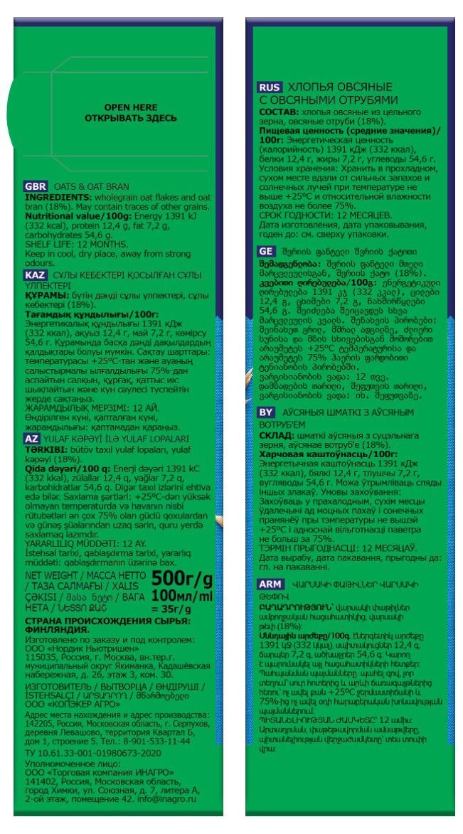 Хлопья овсяные из цельного зерна, овсяные отруби (18%)