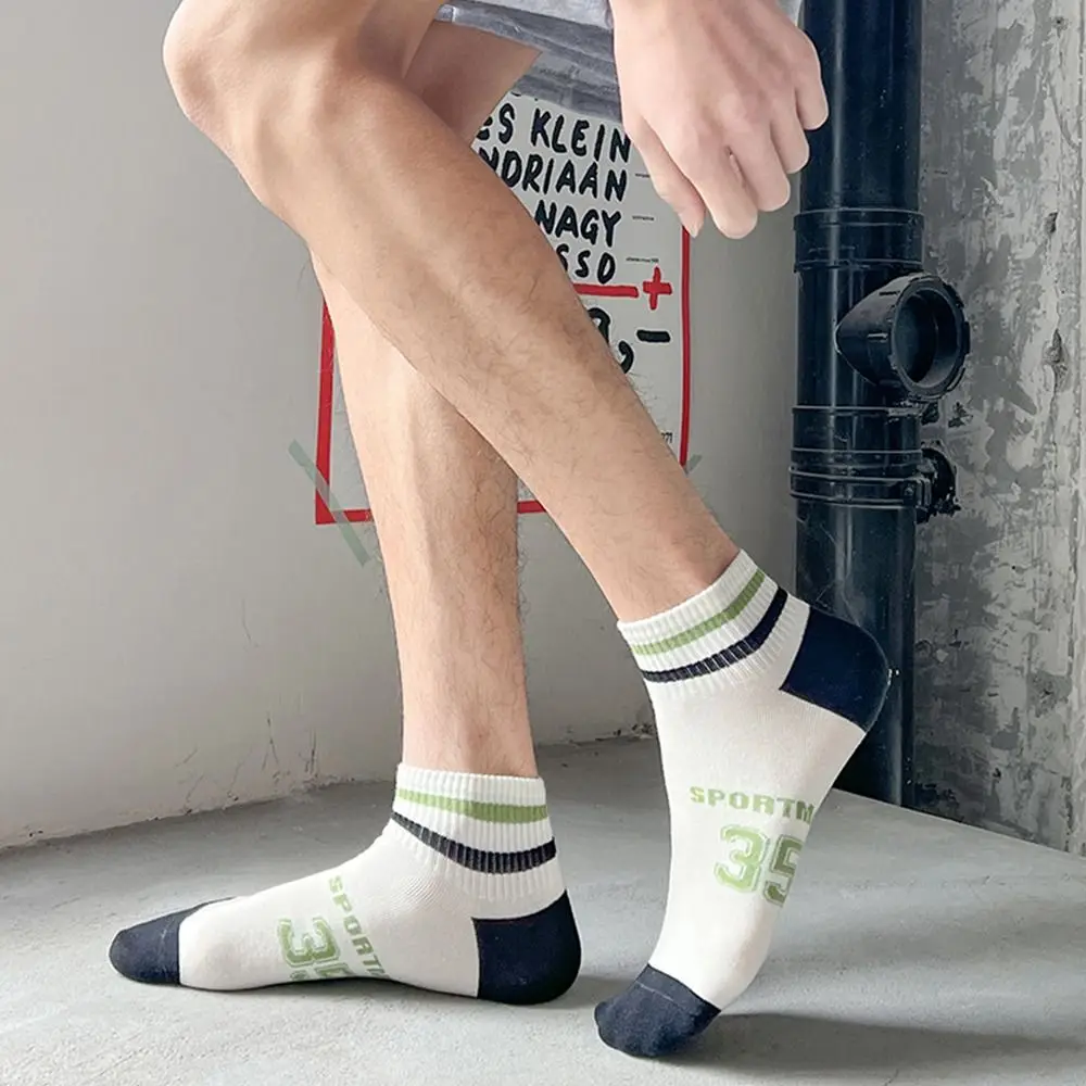 Носки мужские короткие хлопковые, дышащие спортивные, впитывающие пот, повседневные до щиколотки, с надписью и вышивкой