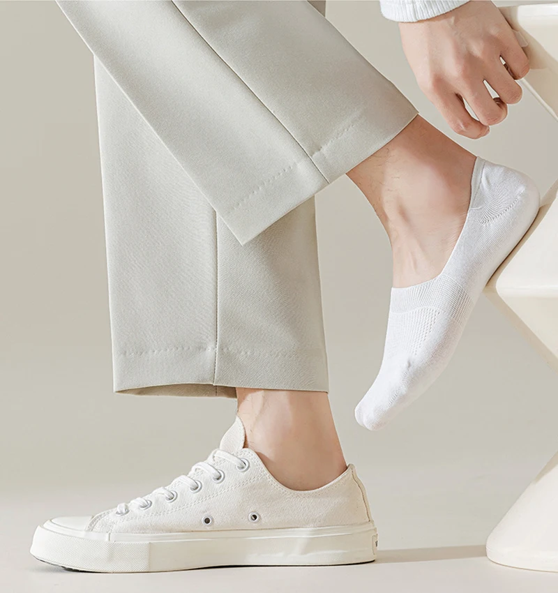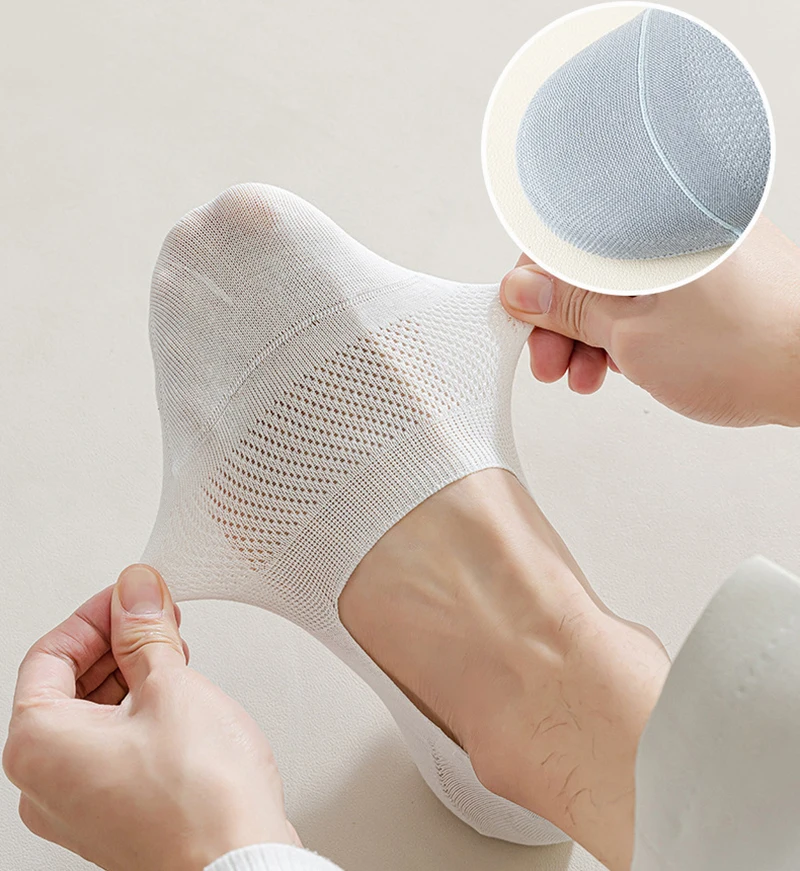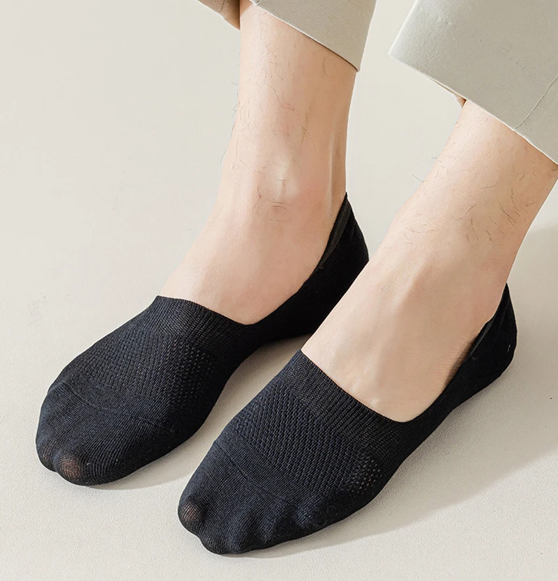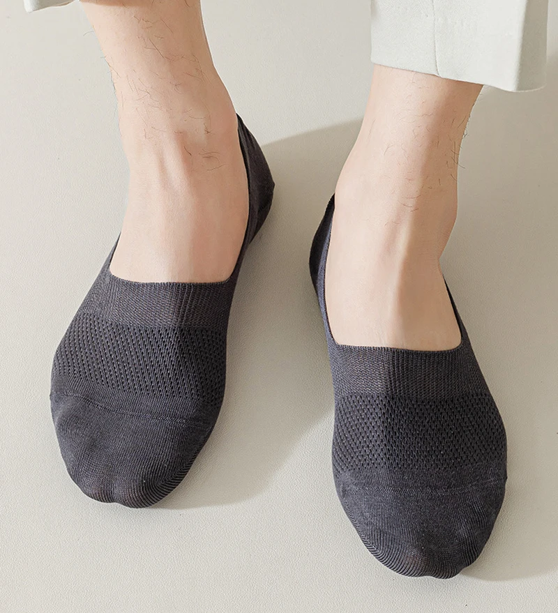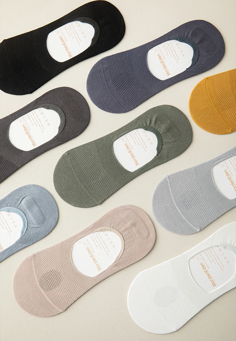 Носки мужские с закрытым носком, тонкие сетчатые дышащие хлопковые однотонные Нескользящие невидимые носки-невидимки для отдыха, летние