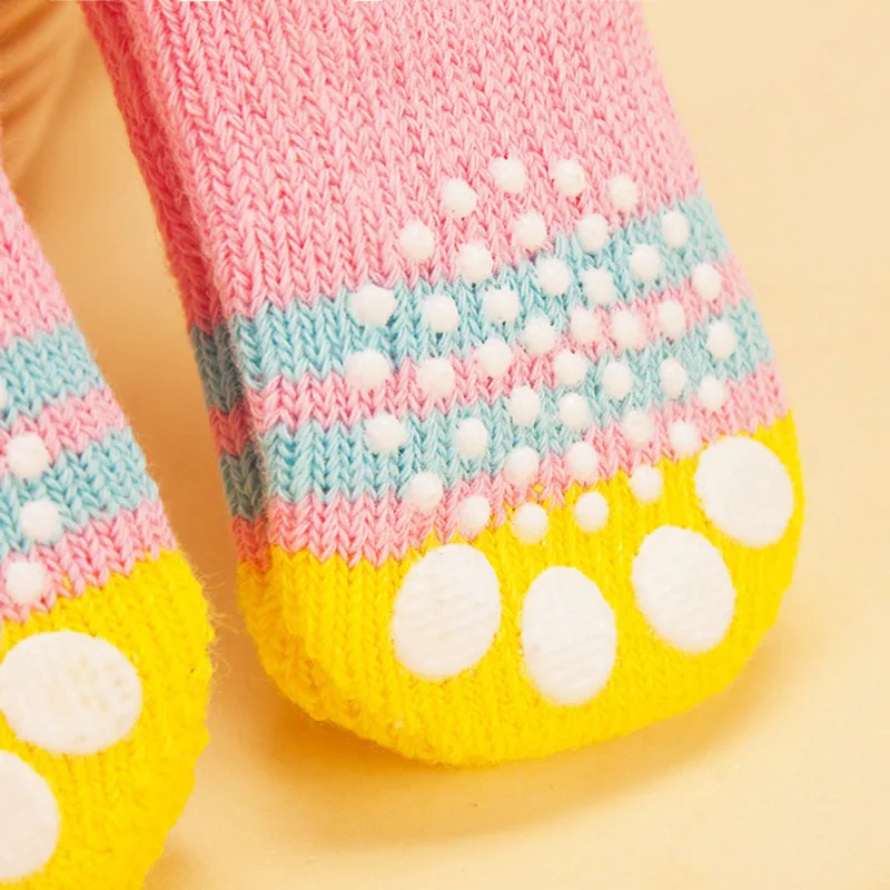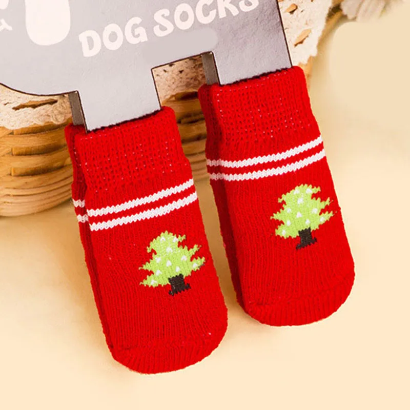 4pcs Warm Puppy Dog Shoes Soft Pet Knits Socks Cute Cartoon Anti Slip Socks