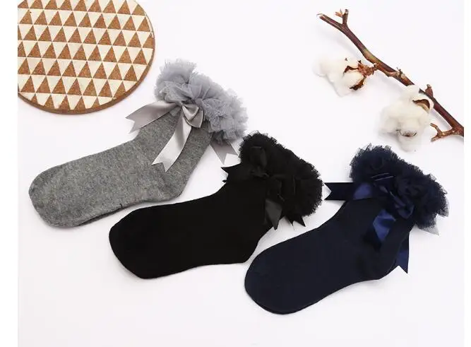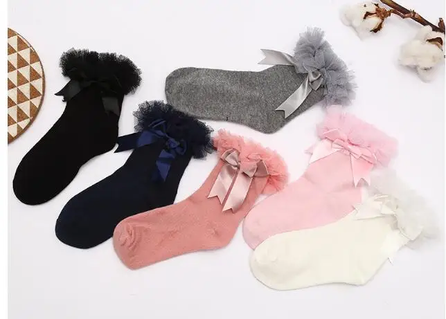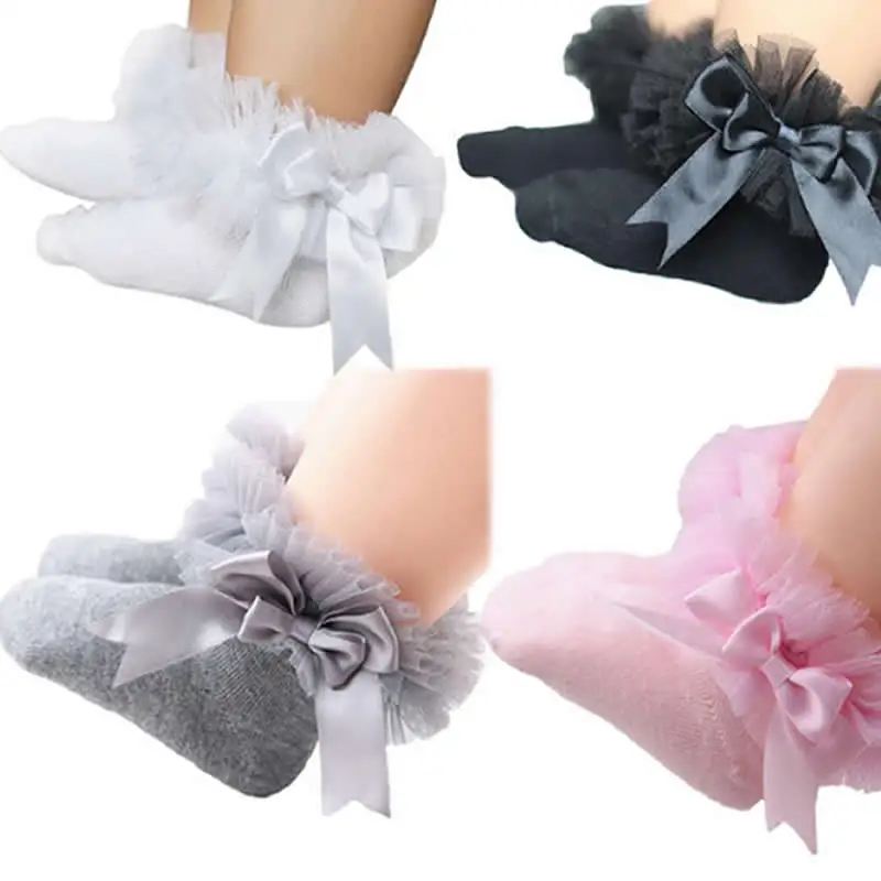 Носки принцессы для маленьких девочек с бантом, кружевные короткие носки с цветочным рисунком, Детские хлопковые носки с оборками и оборками, носки до щиколотки для девочек, Праздничные Носки