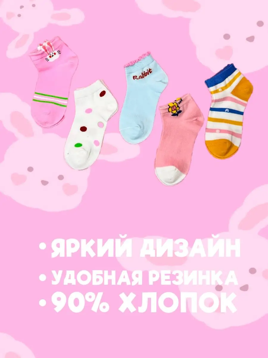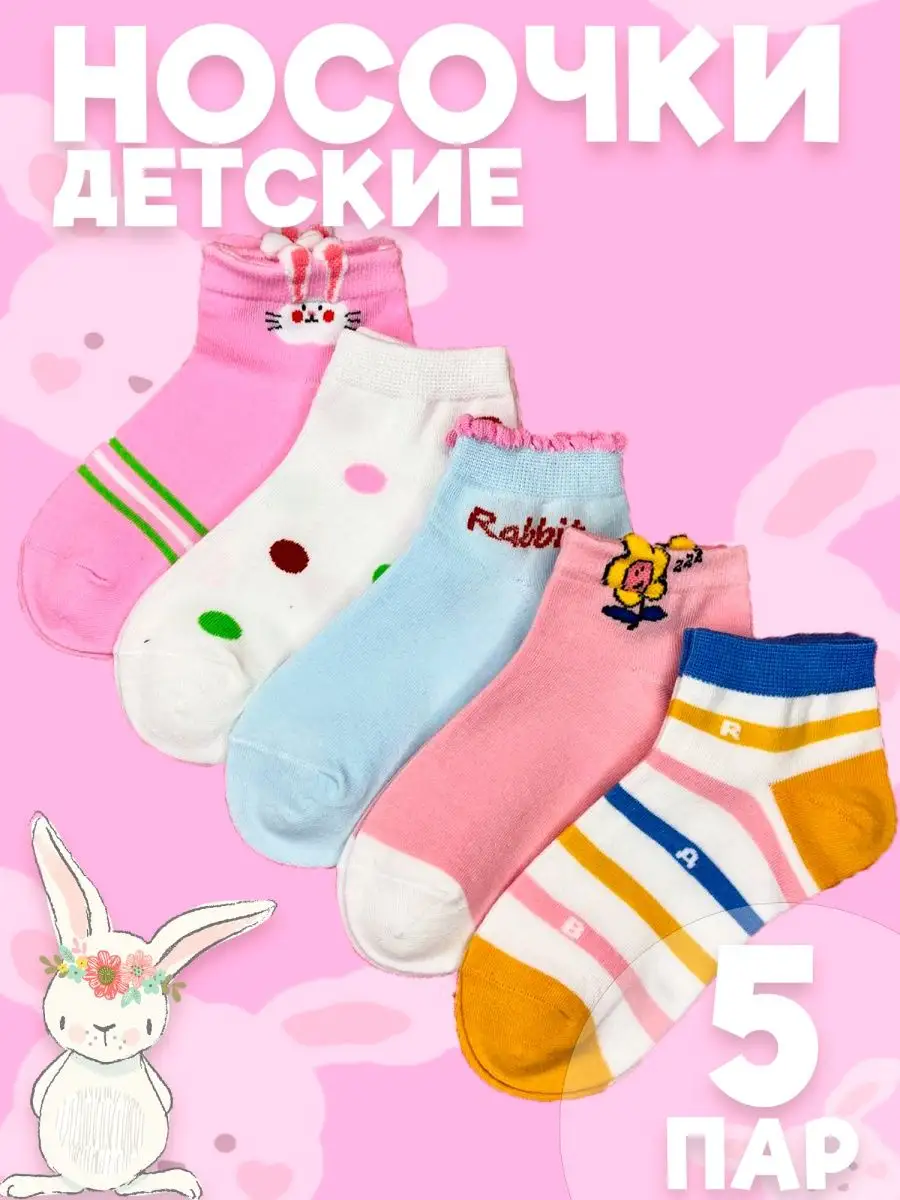 Носки с зайчиками для девочек набор 5 пар