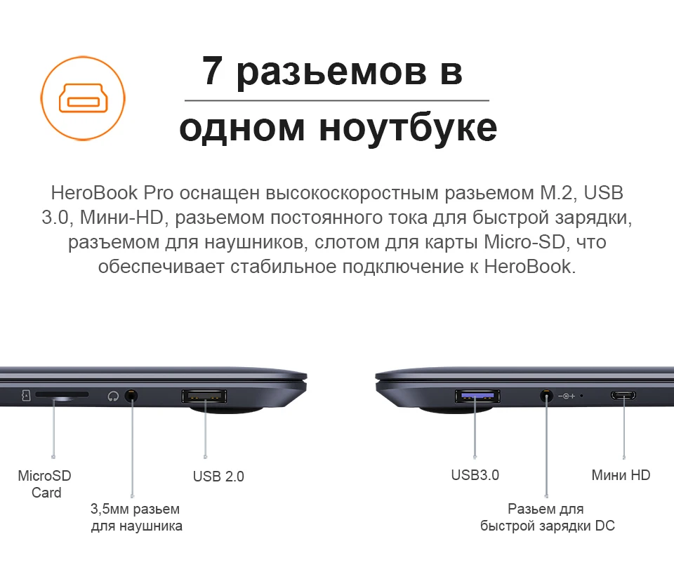 -Мульти-интерфейсы: M.2 высокая скорость, USB2.0, USB 3,0, Mini-HD, DC порт для зарядки, TF слот для карт.