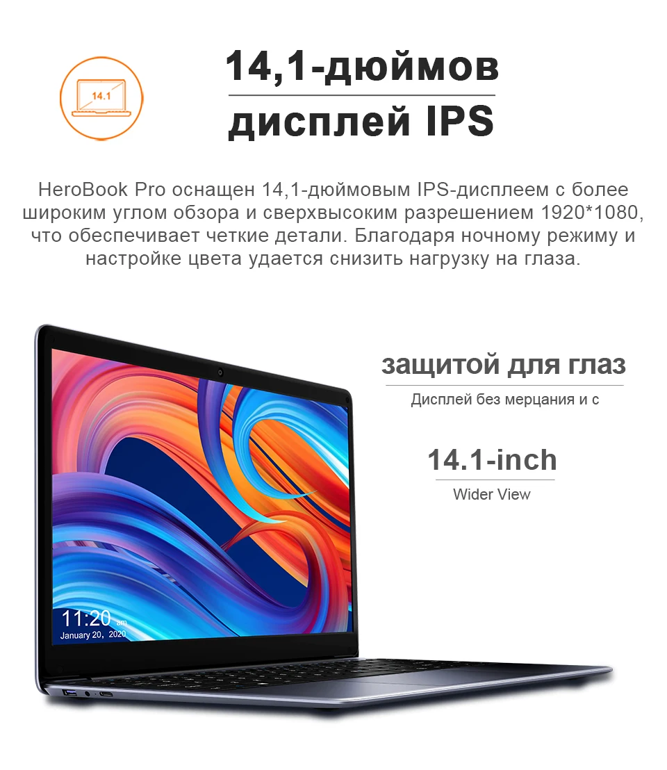 -Ноутбук CHUWI HeroBook Pro оснащен 14,1 дюймовым FHD IPS экраном, 1920x1080p.