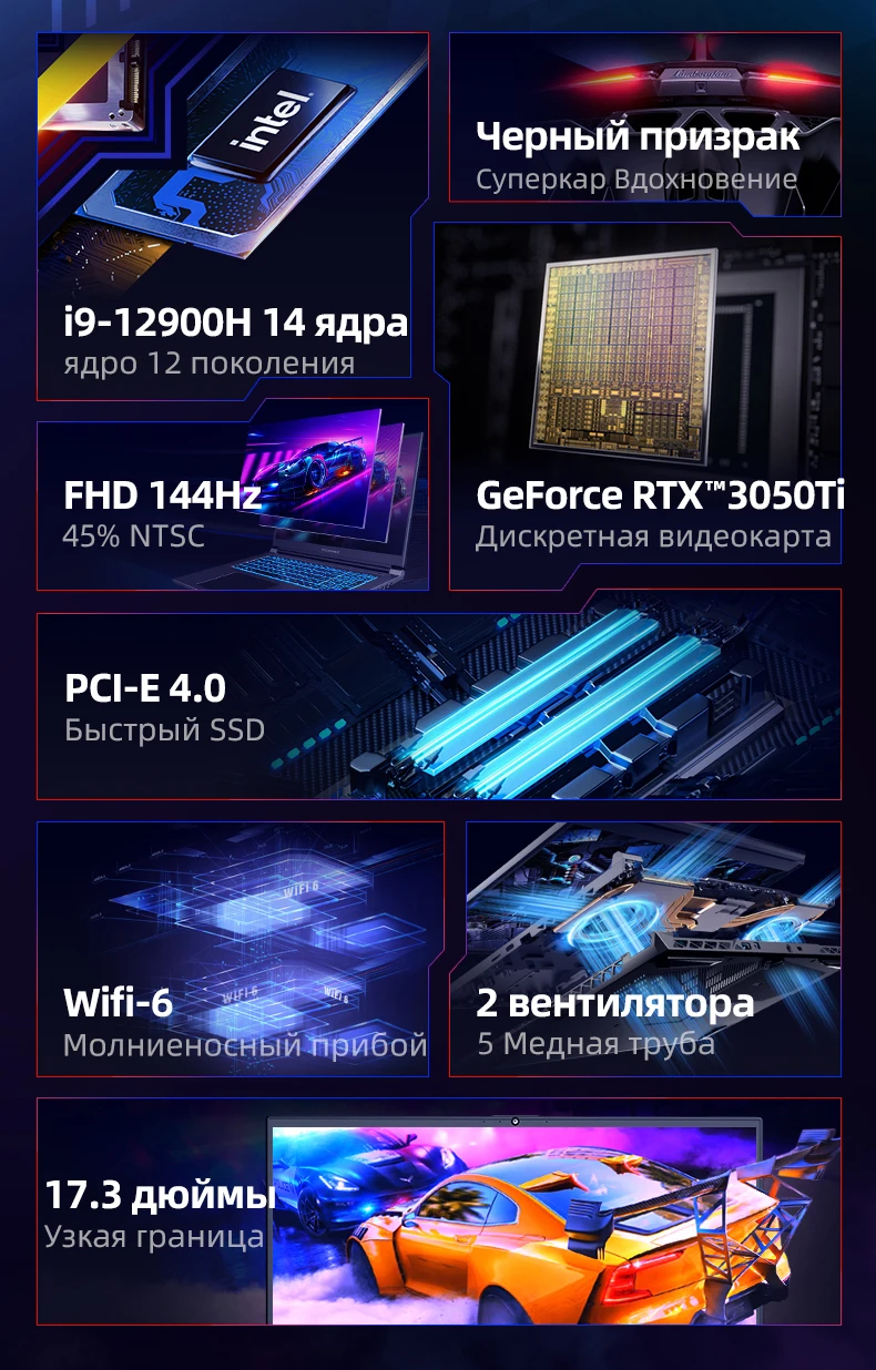 Ноутбук RTX3050Ti i9 12900H Machenike F117 17,3 "144 Гц FHD 16 ГБ 512 ГБ PCIE4.0 WiFi6 с русской клавиатурой