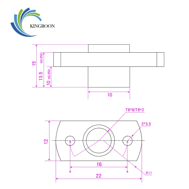 Новая гайка KINGROON T8 H, фланцевая Медная гайка для T8, свинцовый винт шаг 2 мм, свинцовый 2 мм/8 мм для T8 винтовых трапециевидных винтов, запчасти для 3D-принтера