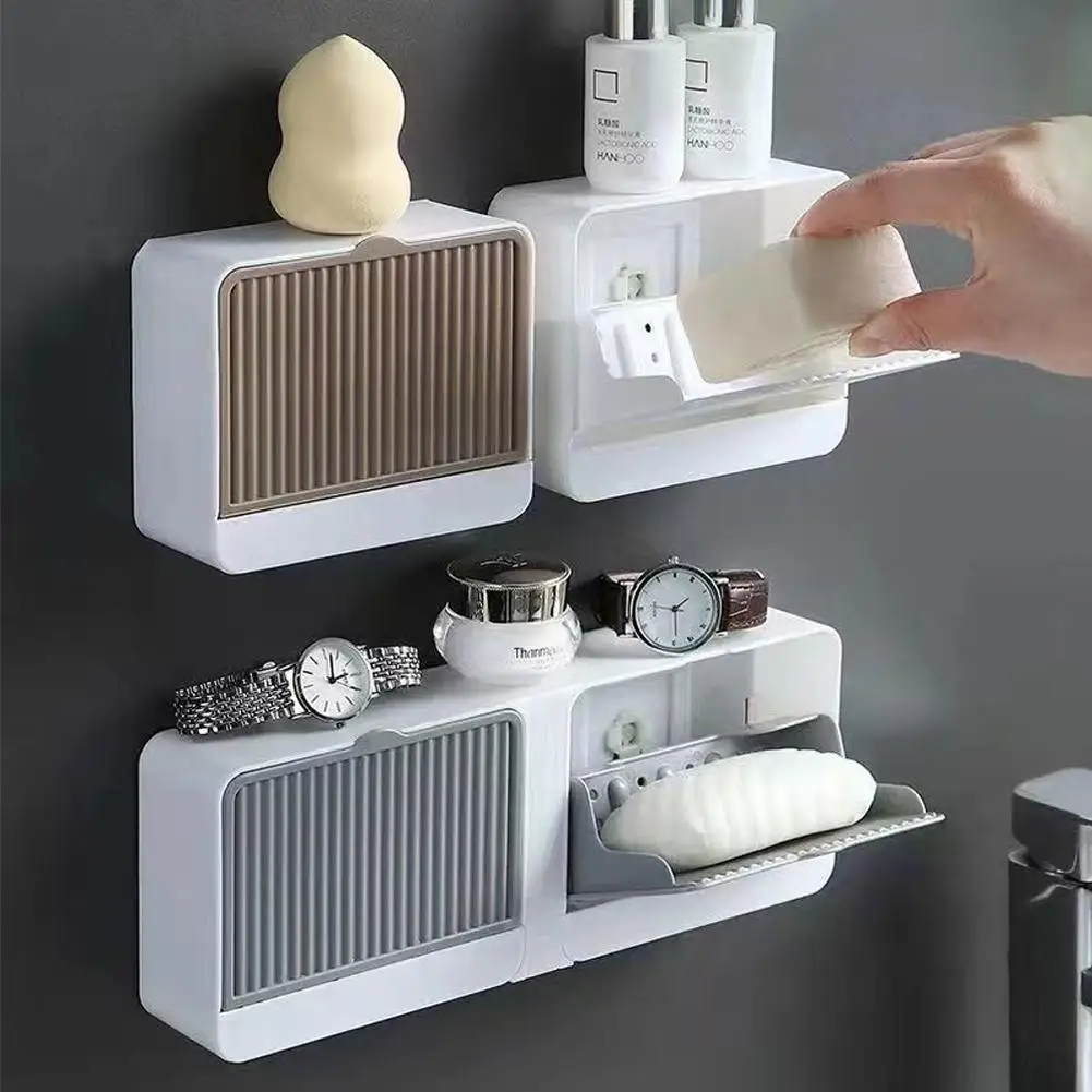 Новая Коробка для мыла, сушилка с двумя отсеками, настенная Коробка для мыла без крышки мыла, держатель для мыла, Пробивка V3P1
