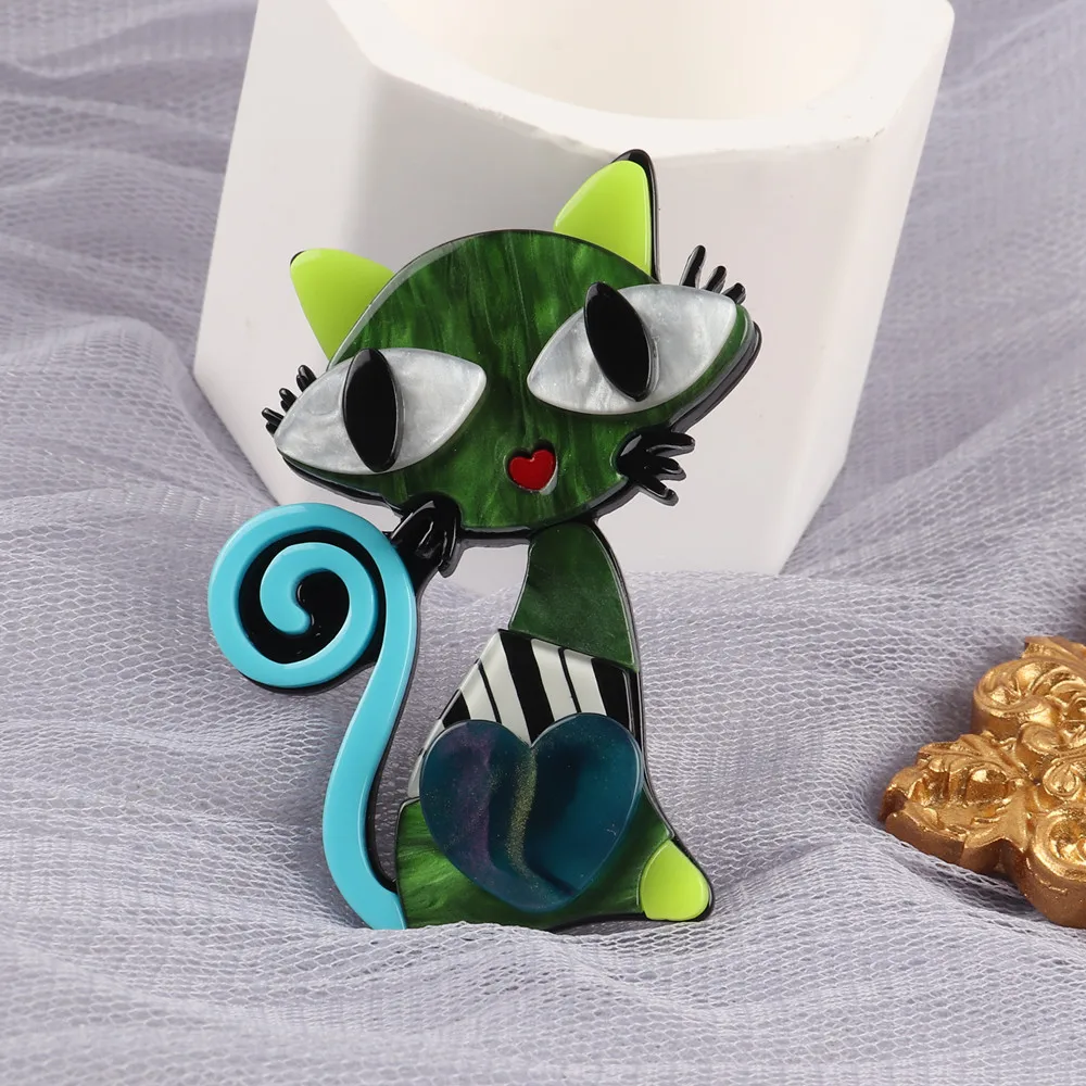 Новая креативная акриловая брошь в виде зеленого кота для женщин, яркие значки и броши в форме сердца, модные украшения для рубашки