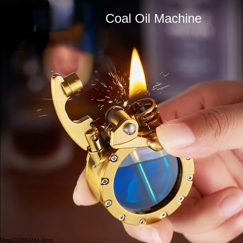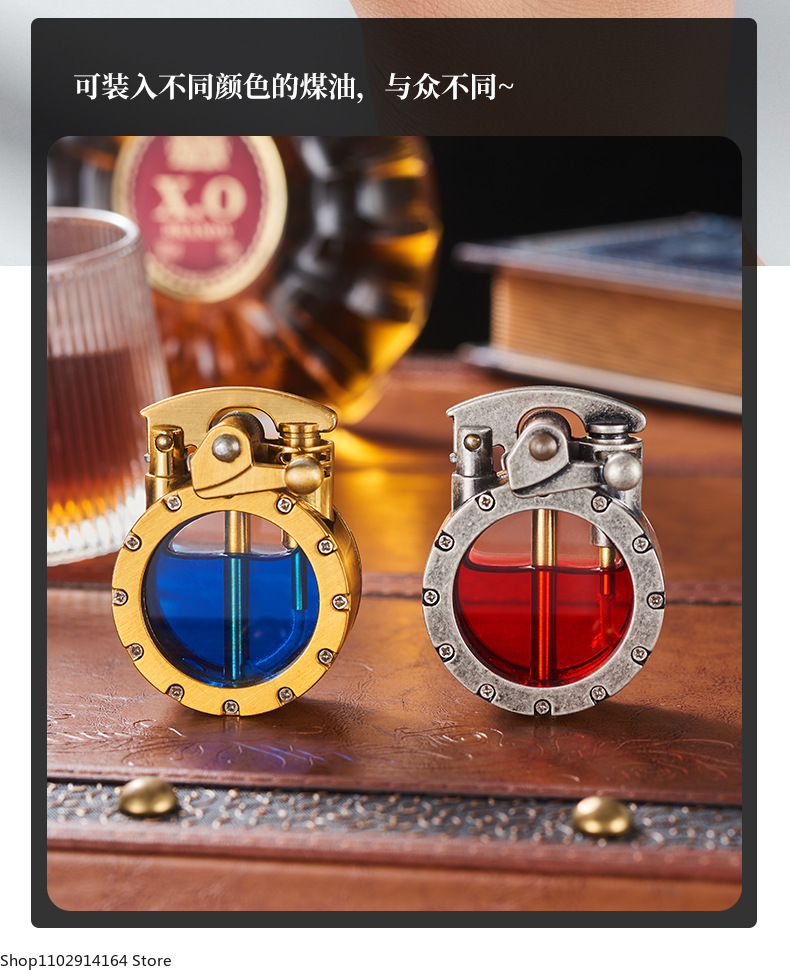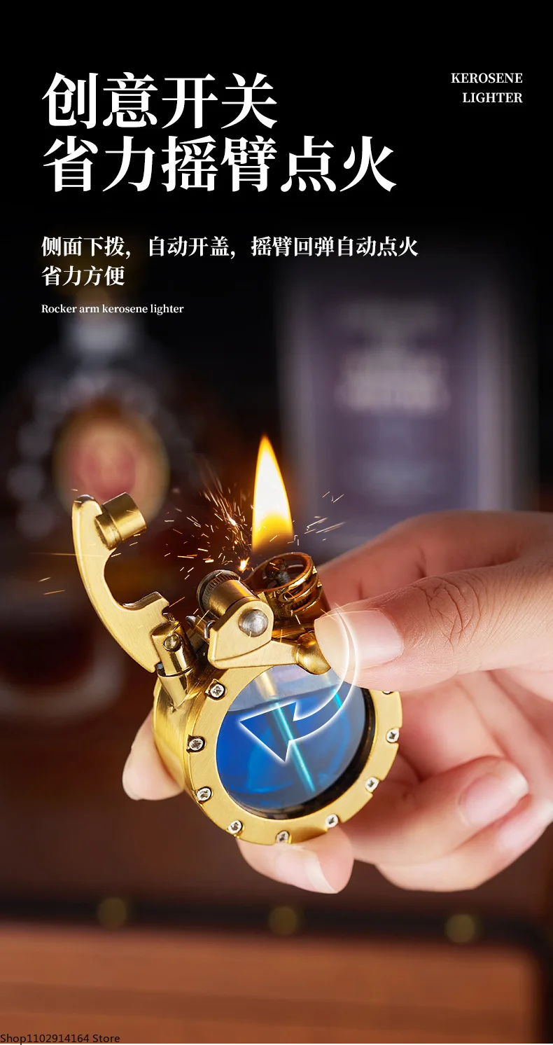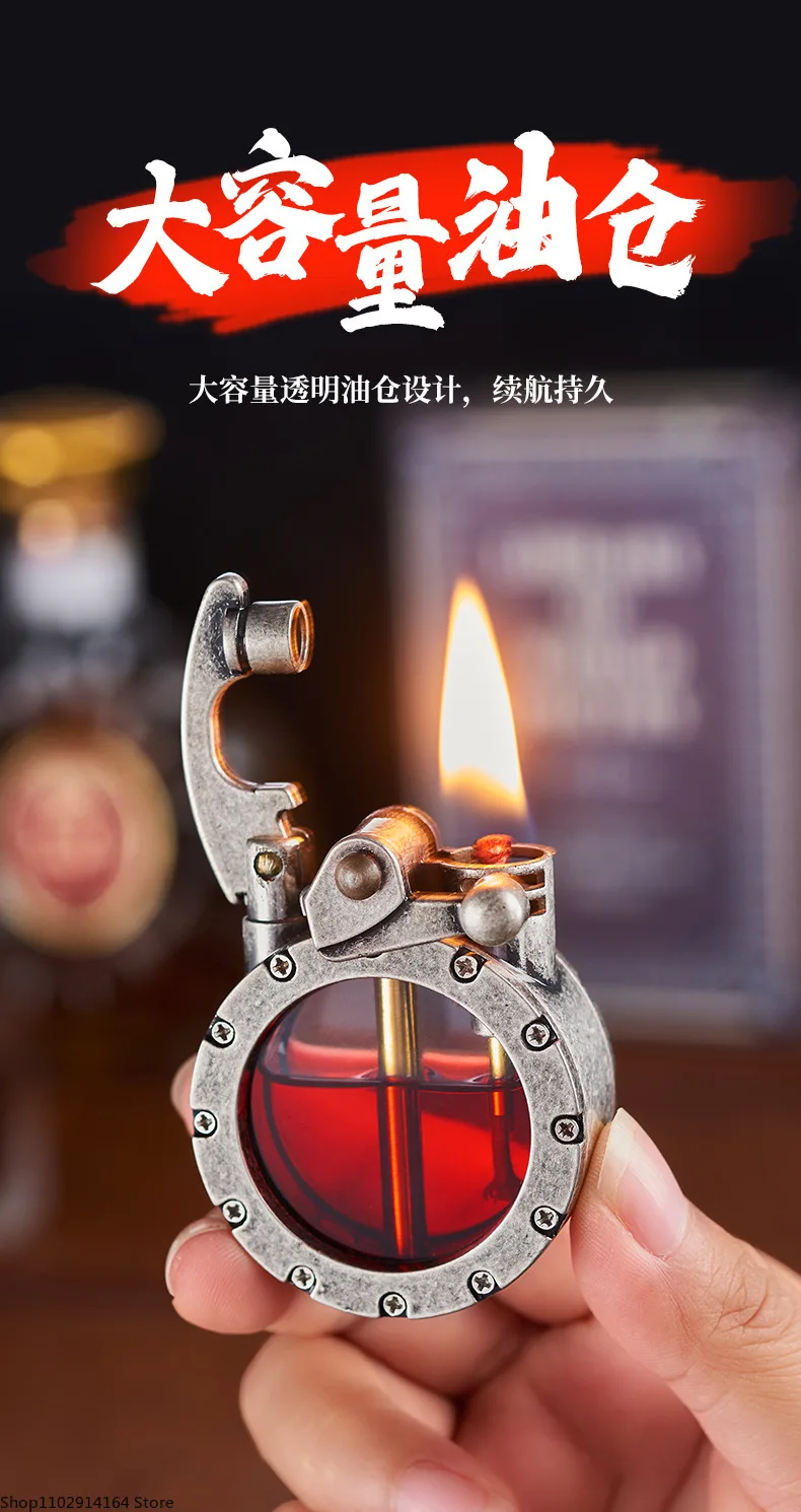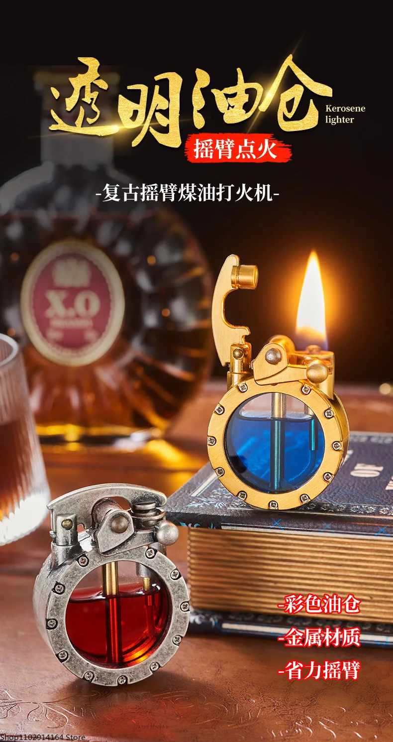 Новая креативная индивидуальная прозрачная зажигалка для масляного бака, мужская компактная ретро-рокерная керосиновая зажигалка, хороший подарок