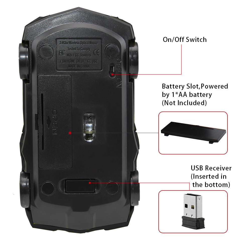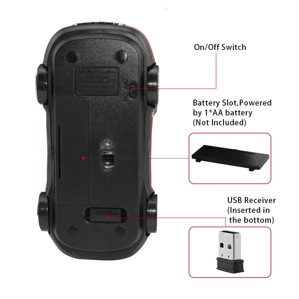 • Wireless 2.4 GHz car mouse, comfortable touch.