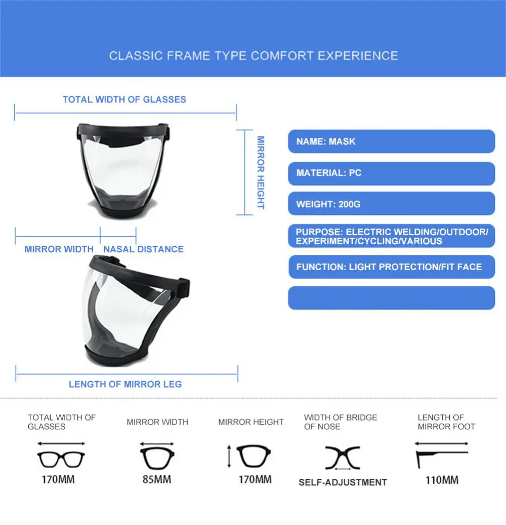 Новая Полнолицевая защитная маска, прозрачная Пылезащитная маска с защитой от брызг, ПК, Спортивная противотуманная маска для верховой езды на открытом воздухе