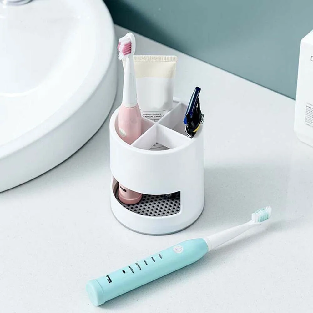 【Многофункциональное хранилище 】 Этот держатель для зубных щеток имеет четыре отделения, в которых можно хранить зубные щетки, зубную пасту, бритвы, расчески, косметические карандаши и другие предметы. Подходит для использования в различных сценариях, таких как ванная комната, кухня, спальня, офис и т. Д.