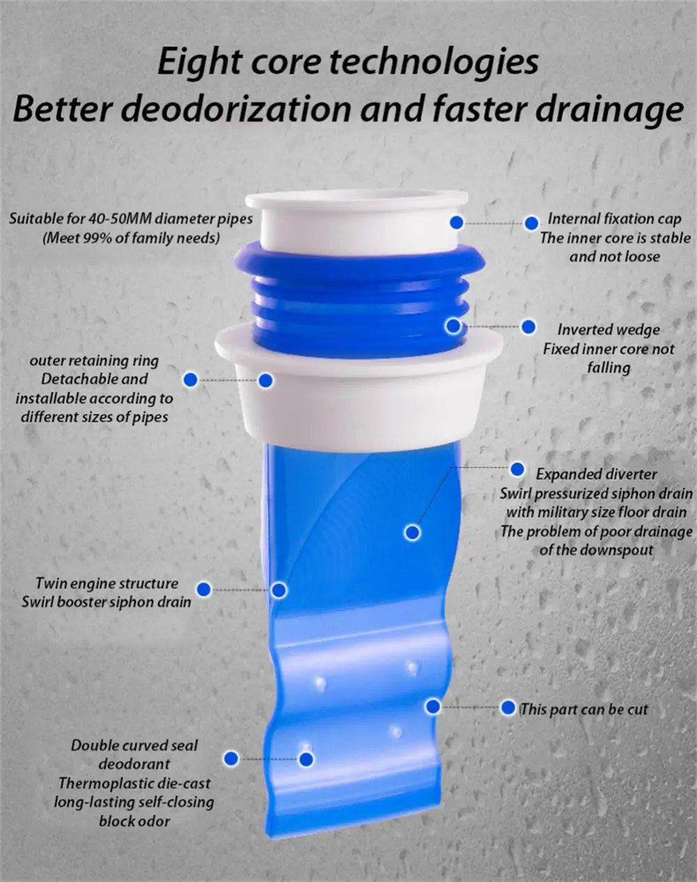 【Широкое использование 】. Канализация соединена с септиком, и нездоровые вещи могут войти в комнату из вонючей канализационной трубы. Поэтому необходимо установить сливные уплотнения в ванных комнатах, кухнях, туалетах, душевых комнатах, подвалах, гаражах и прачечных.
