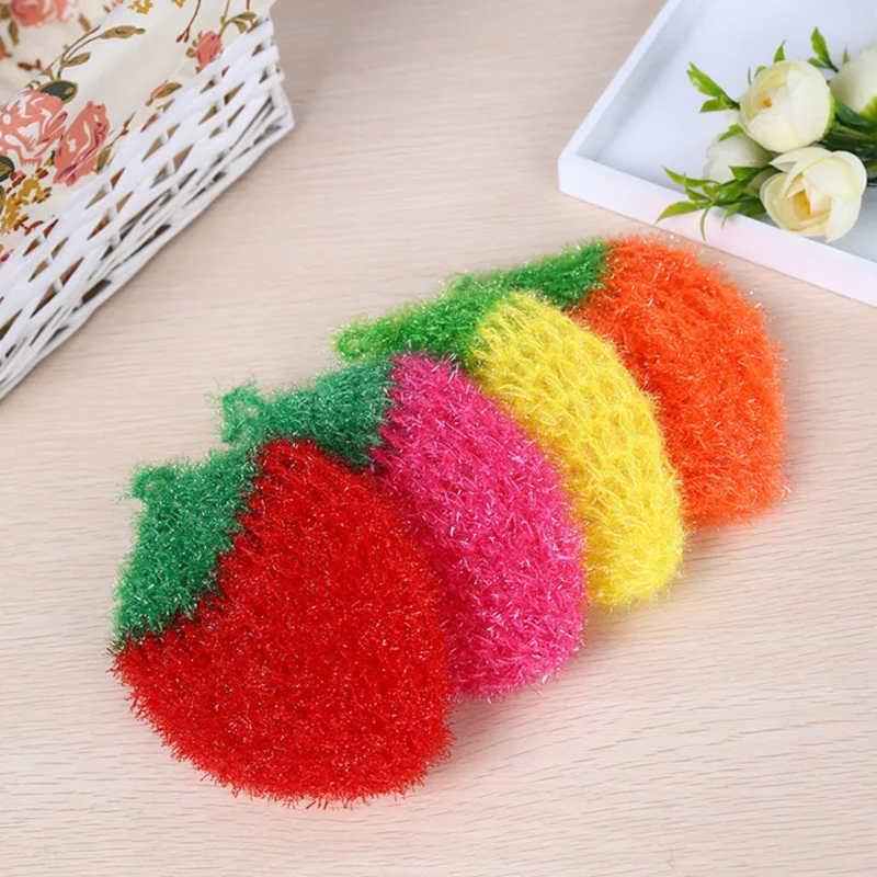 Новая ткань для мытья посуды из полиэстера в виде клубники, кухонная щетка, полотенца для мытья посуды, чистящая тряпка, сковорода, губка, чистящие прокладки