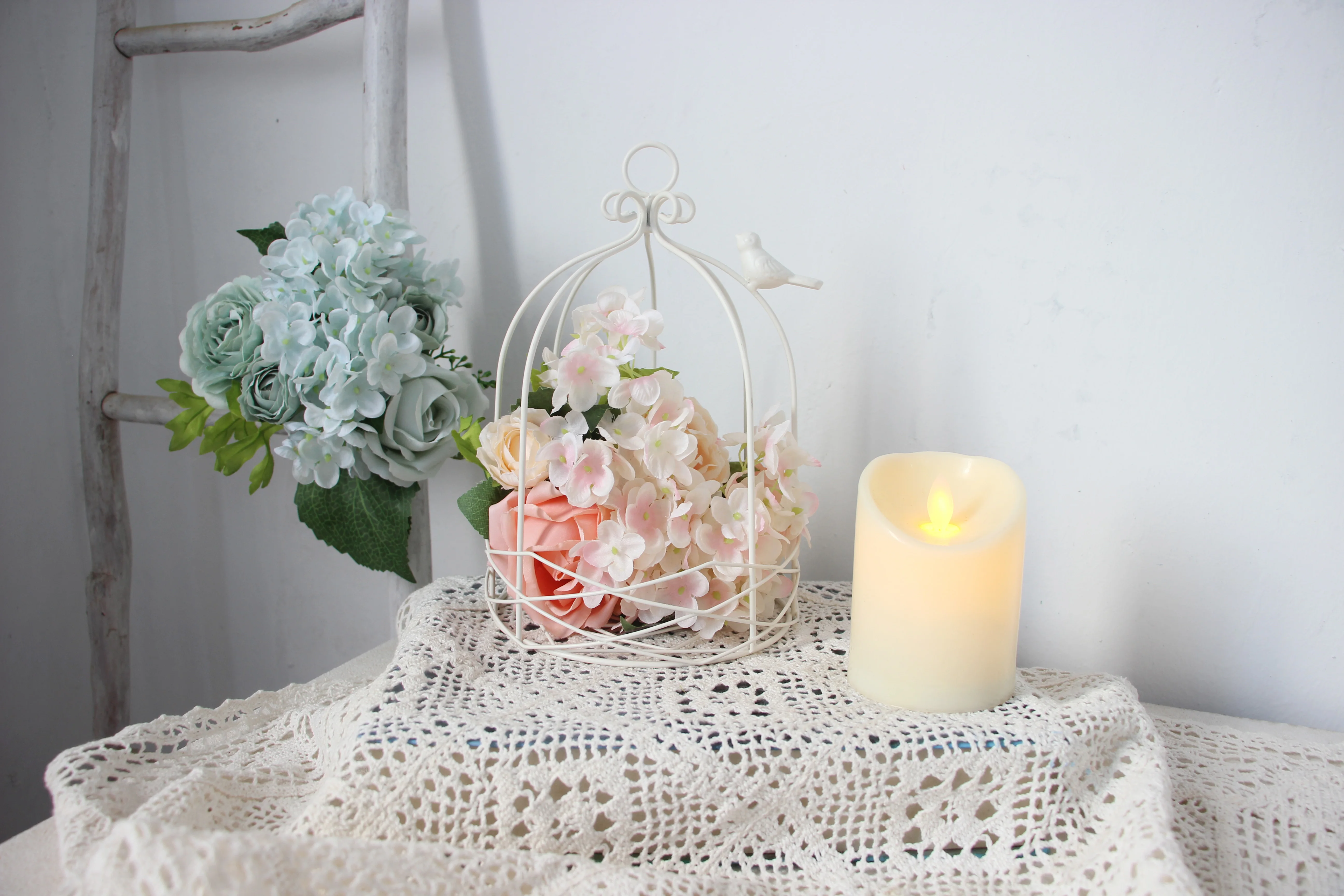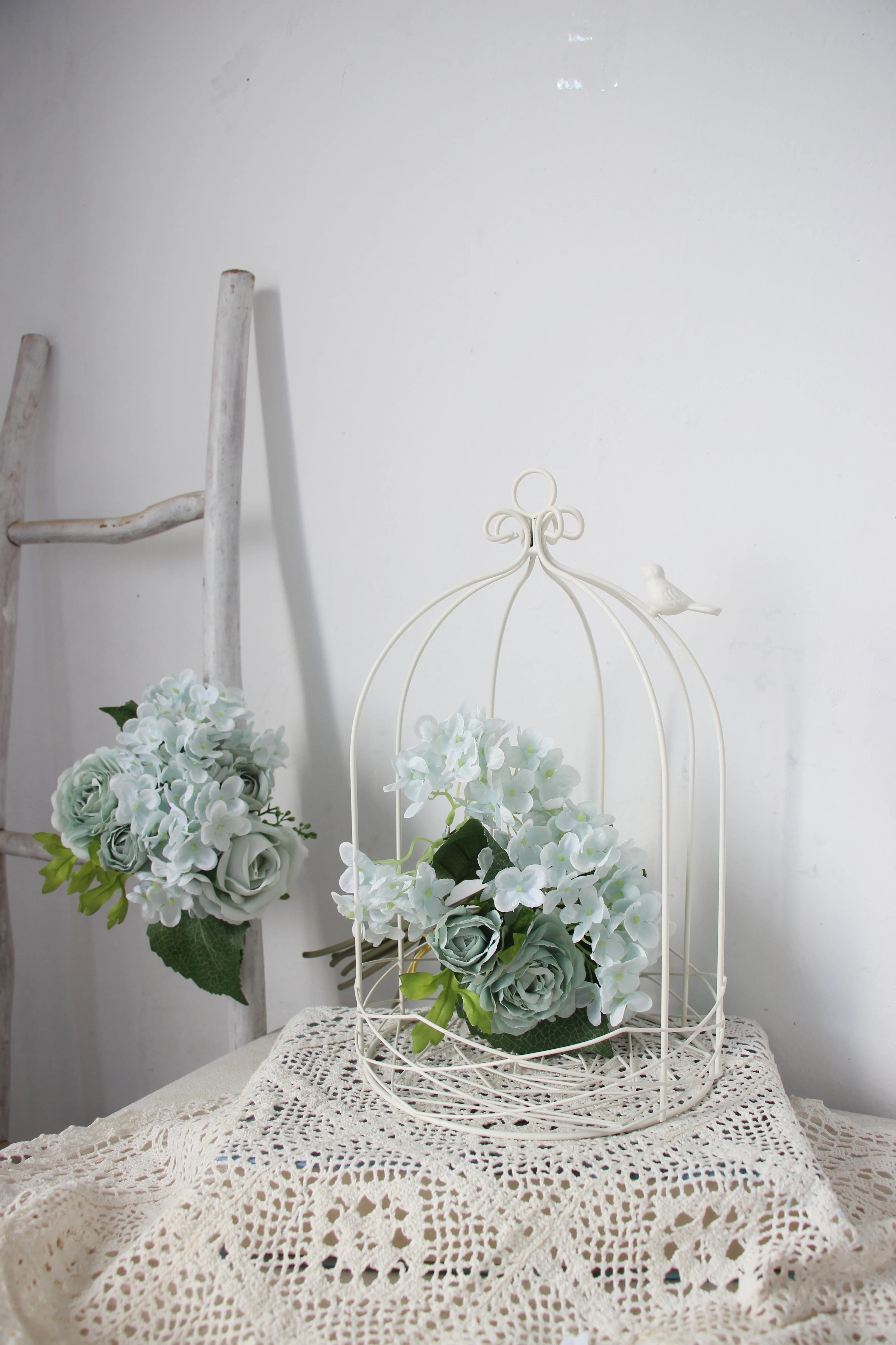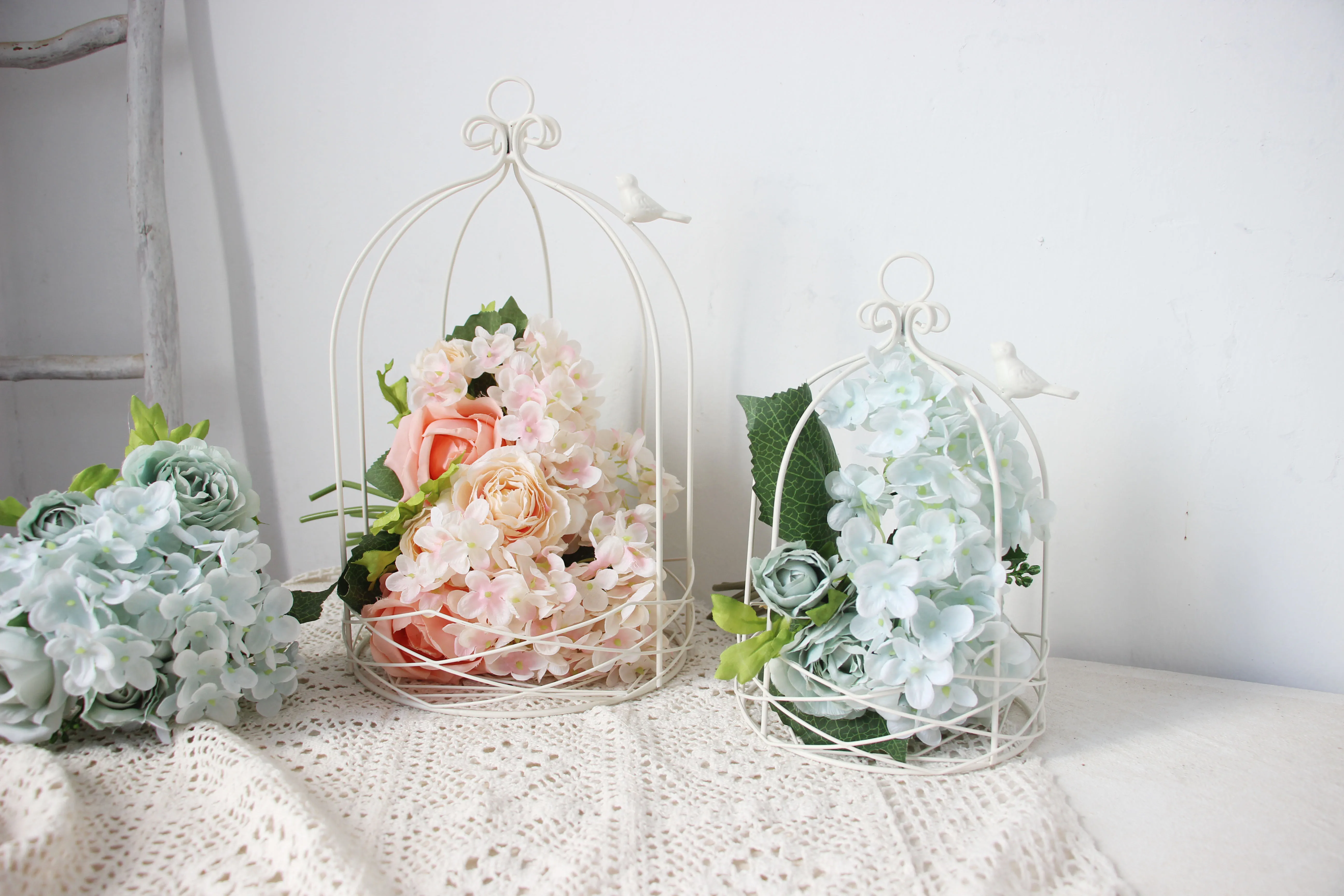 Новая уличная Современная железная садовая металлическая клетка для птиц, клетка с белыми линиями со стандартным украшением, искусственные растения-суккуленты