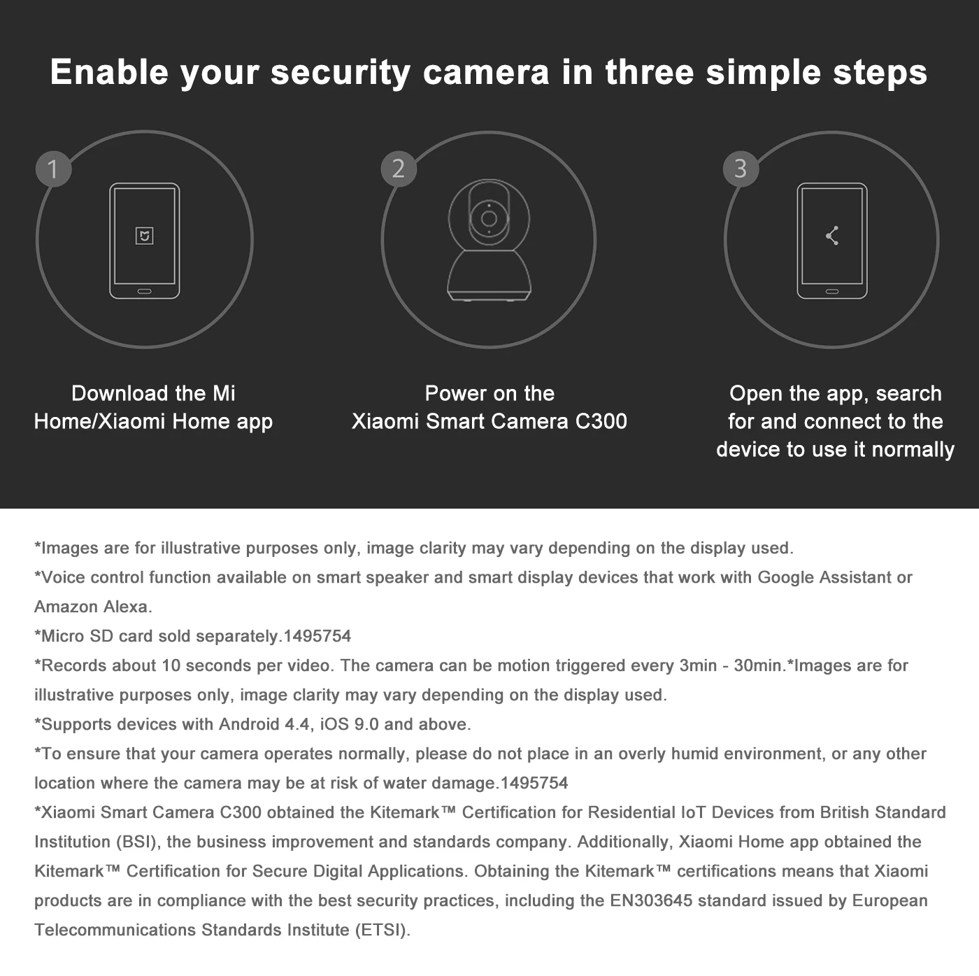 Смарт-Камера Xiaomi C300 использует сверхчеткую технологию HD для съемки более подробных изображений.