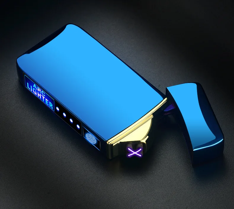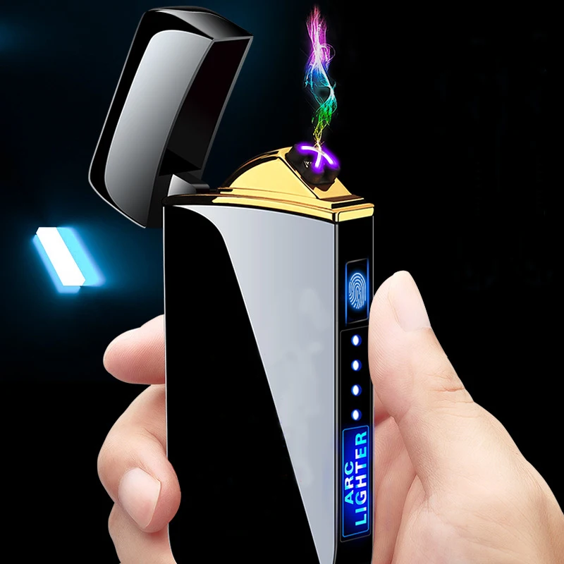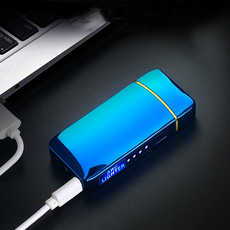 Новая ветрозащитная беспламенная зажигалка с двойной дугой светодиодный светодиодным индикатором мощности, USB Сенсорная металлическая плазменная зажигалка, портативная кухонная зеркальная