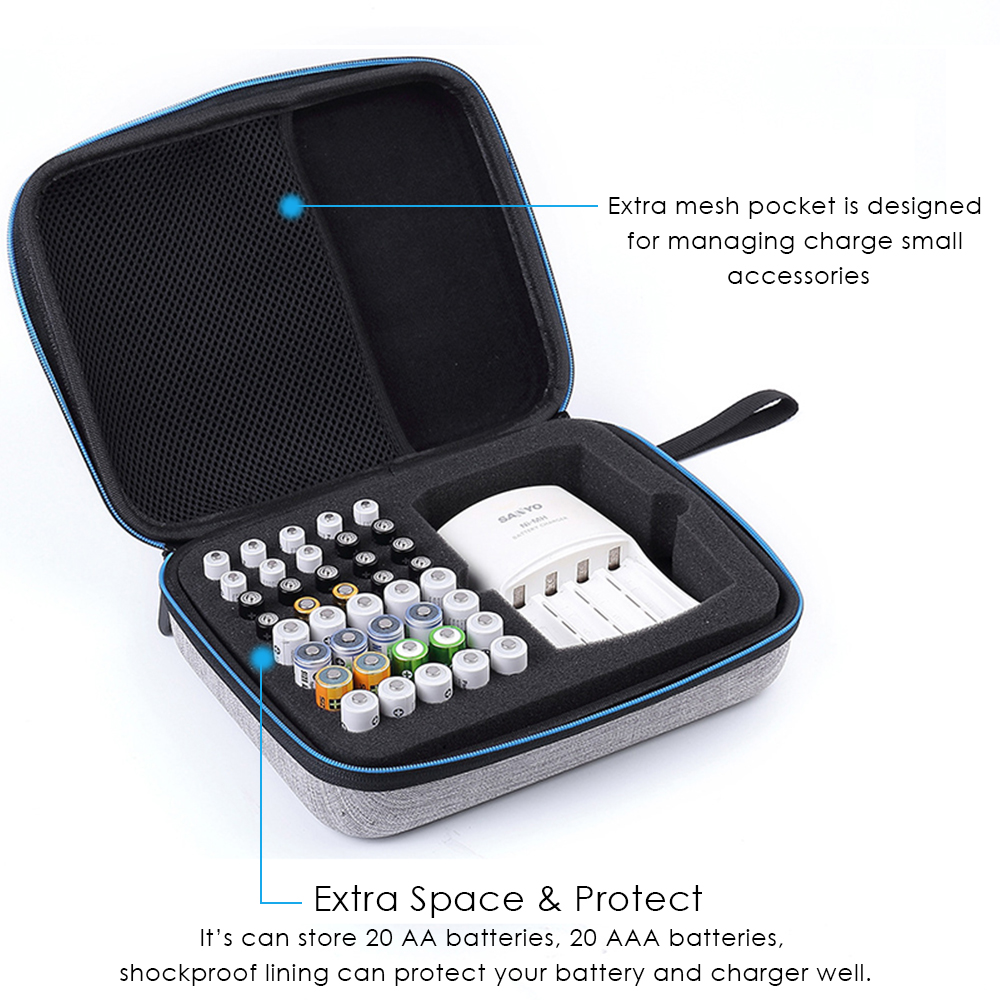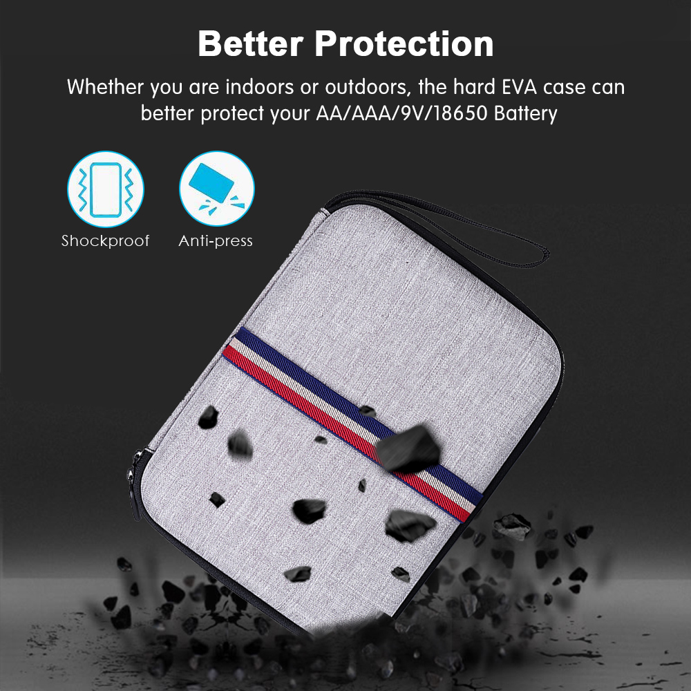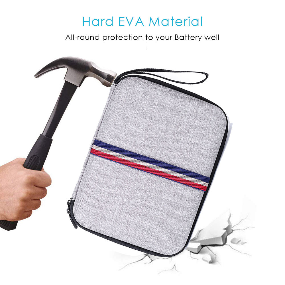 Specially Design for 18650/9V/aa/aaa battery storage, Make the batteries more tidy and store them together safely. Material is EVA+ PU, it shockproof, waterproof and dustproof, soft and easy to Carry, Great Protective for Battery, Protect the battery from Strike, Scrape and Fall.