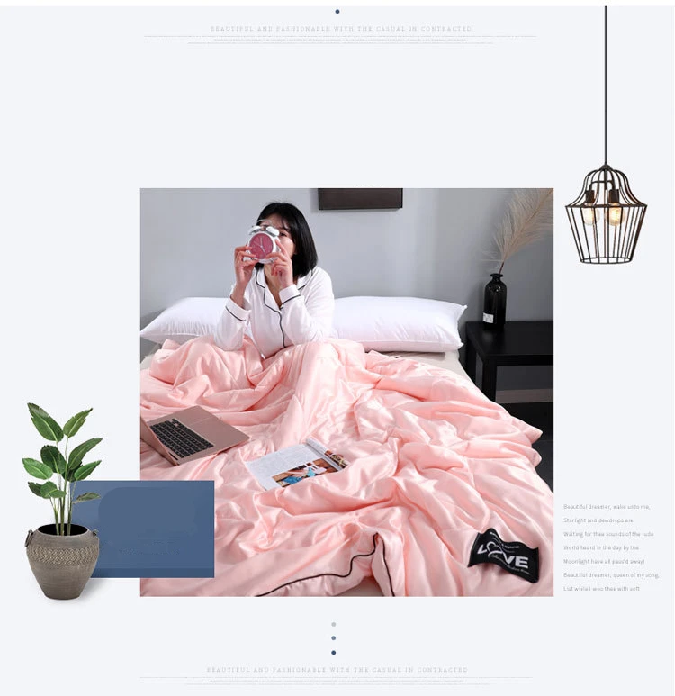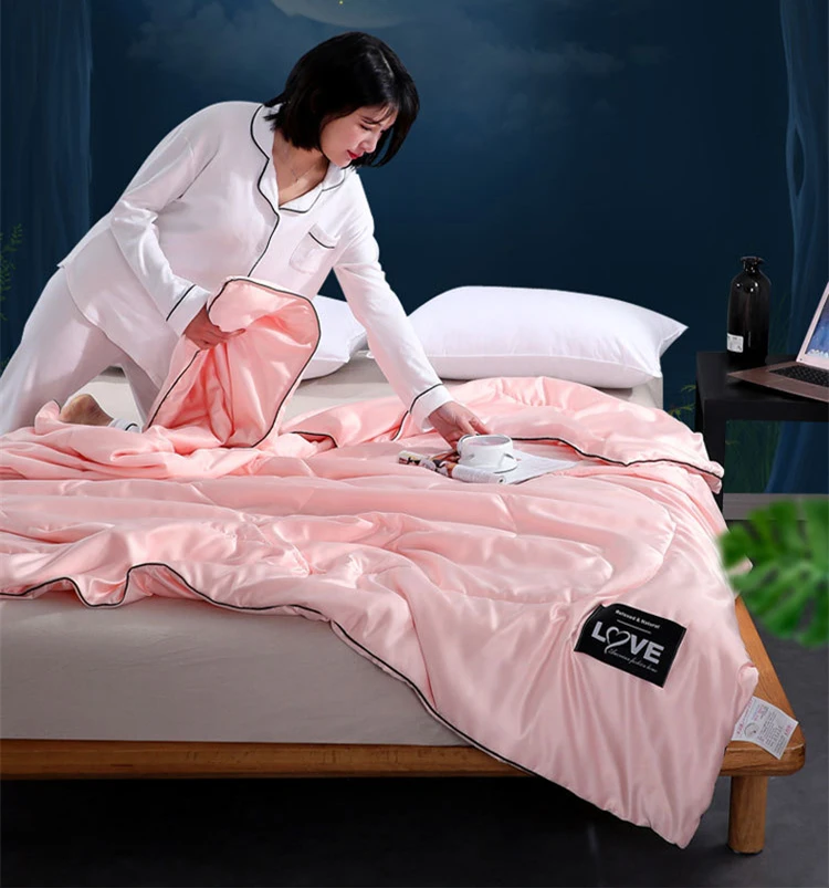 Новинка 100%, однотонные, шелковые, летнее одеяло, моющееся одеяло, мягкое шелковое одеяло, одеяло для кондиционера