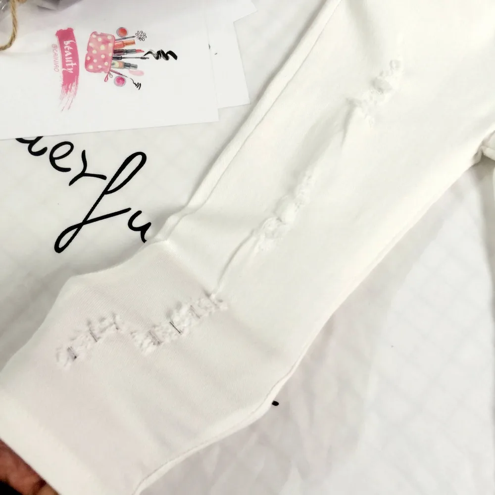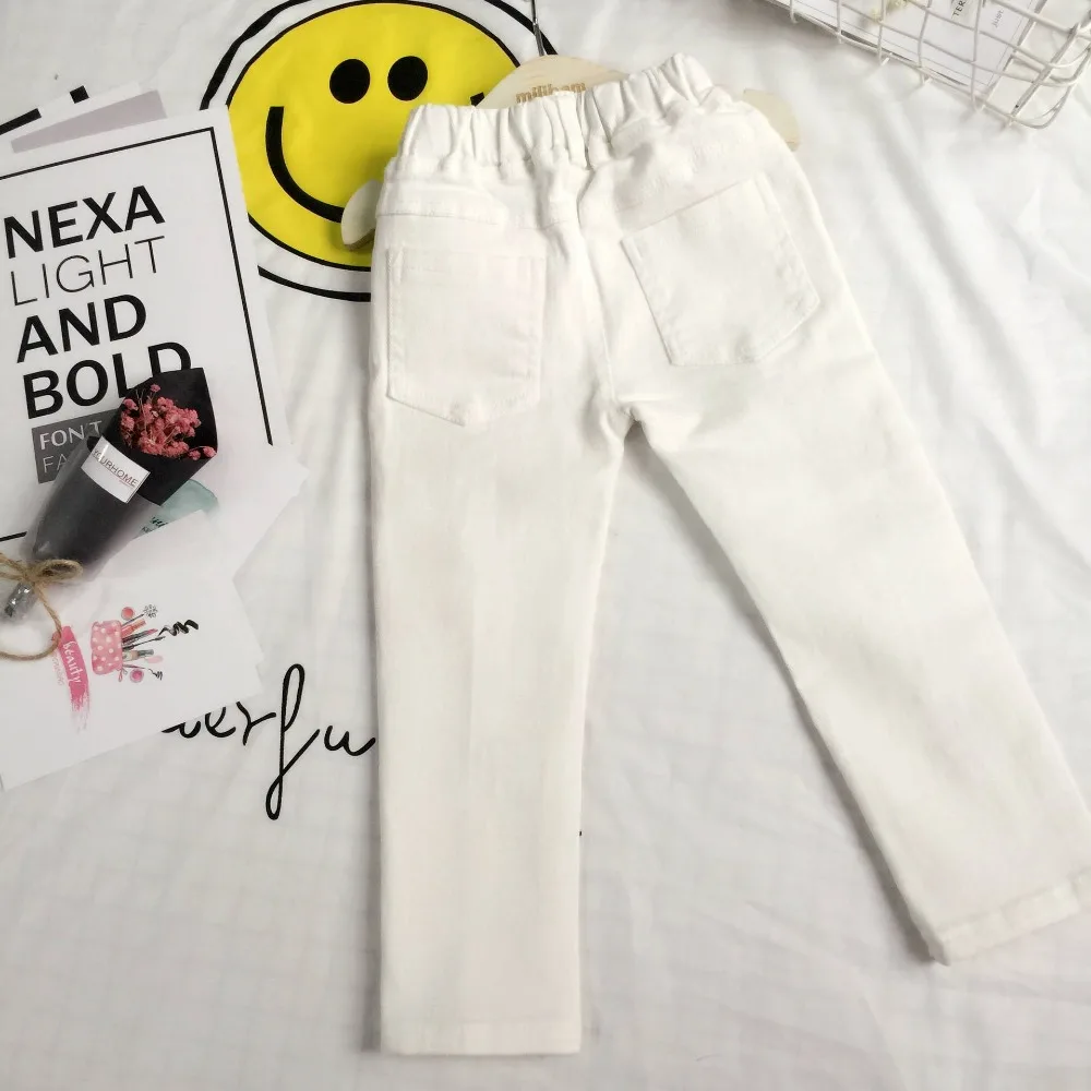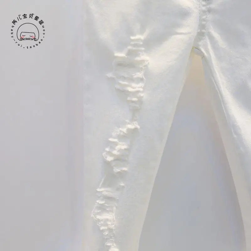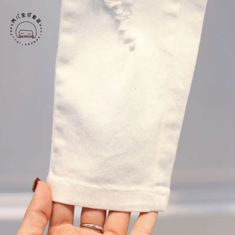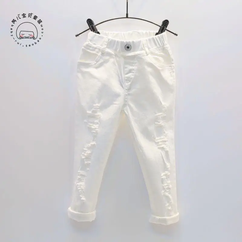 Новинка 2019, белые джинсовые брюки с дырками для девочек