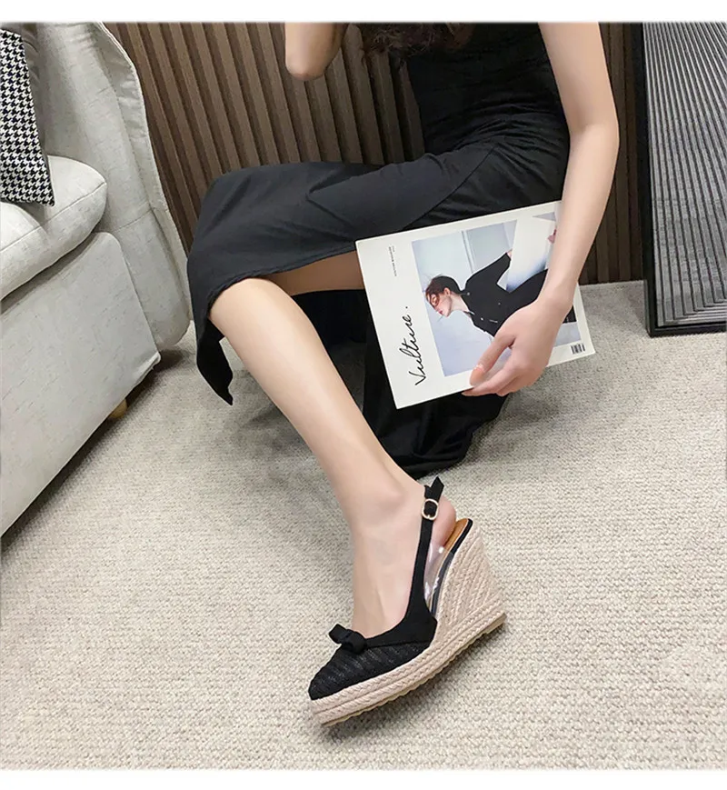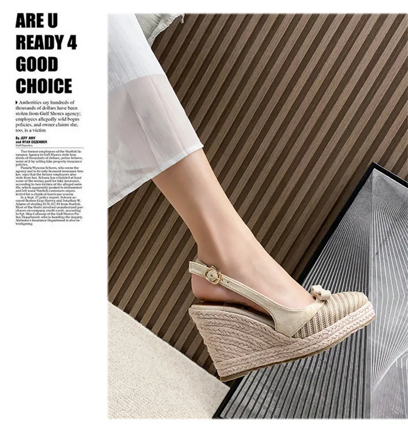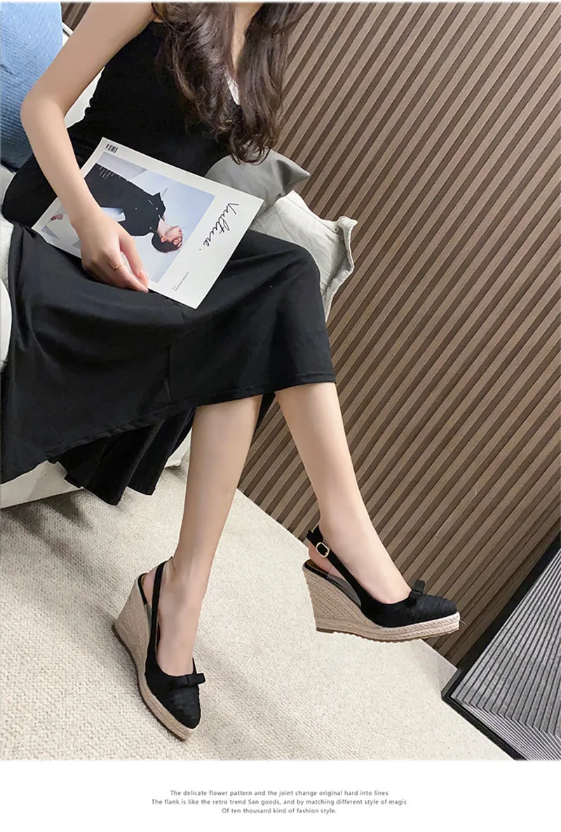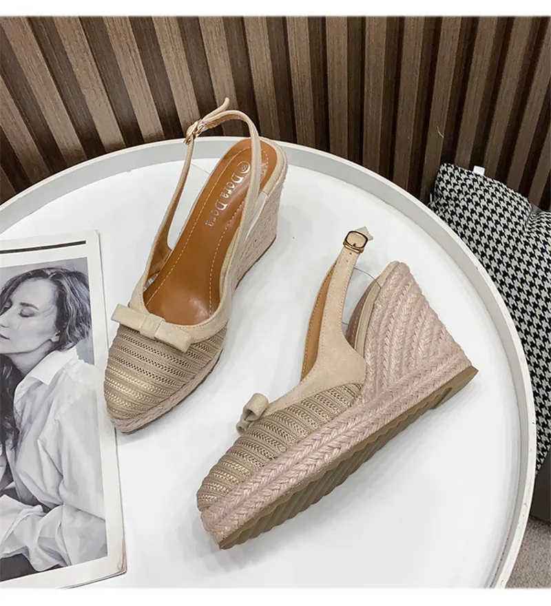 Новинка 2021, женские эспадрильи BEYARNEWomen, босоножки на танкетке, с бантом, с вырезами, женские модные туфли с острым носком, на толстой подошве, из соломы