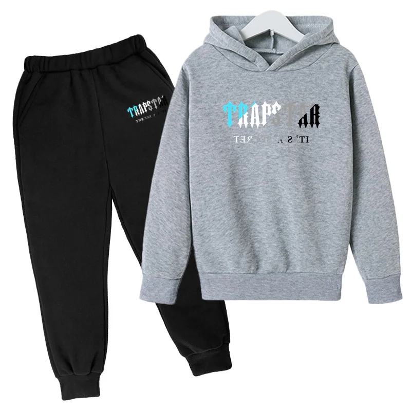 Новинка 2022, брендовый спортивный костюм с трапециевидным принтом для мальчиков и девочек, два свободных толстовки с капюшоном и трикотажное худи для бега