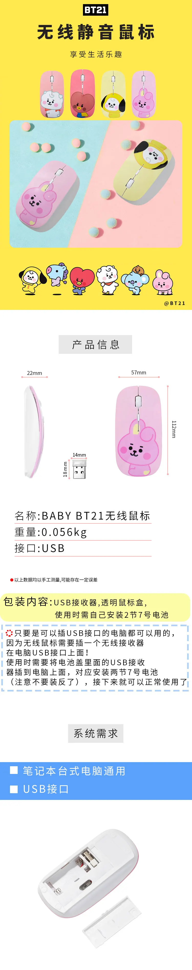 Новинка 2022, Bt21 Kawaii Usb Беспроводная Bluetooth-мышь, милая мультяшная домашняя Бесшумная мышь, Офисная мышь, подарок для девушки