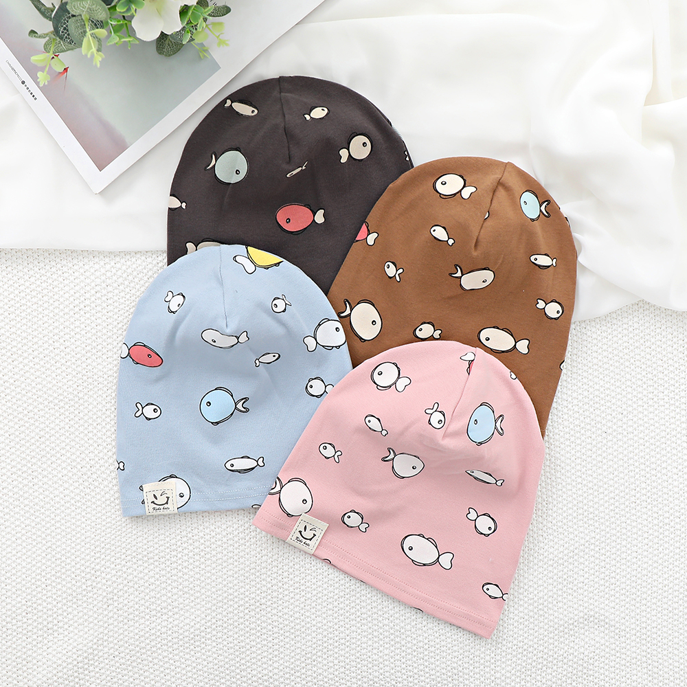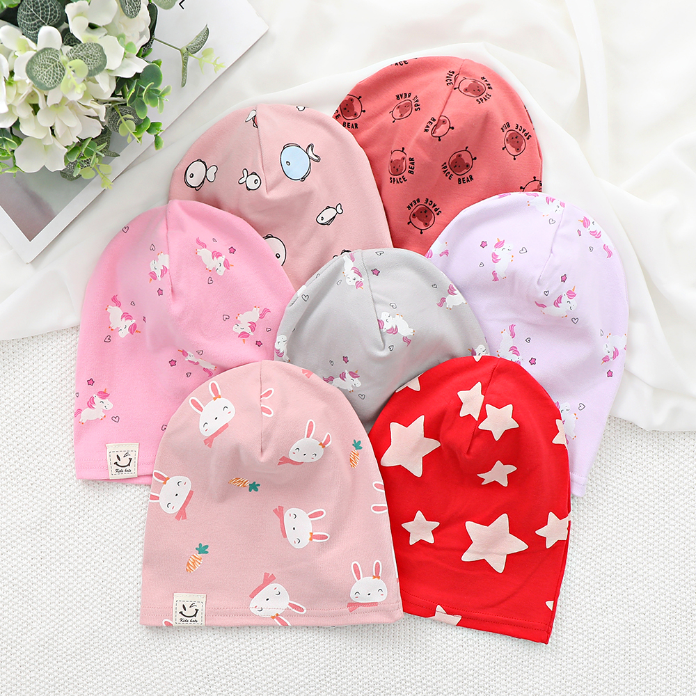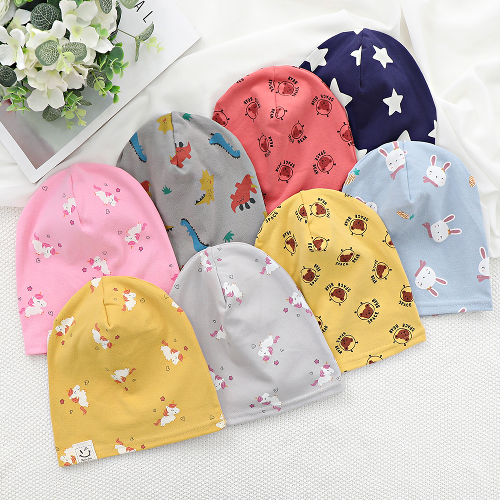 Новинка 2022, демисезонная тонкая детская Шапка-бини, хлопковые детские шапки для девочек с мультяшным принтом животных, детские шапки, шапочки для маленьких мальчиков, шапочка