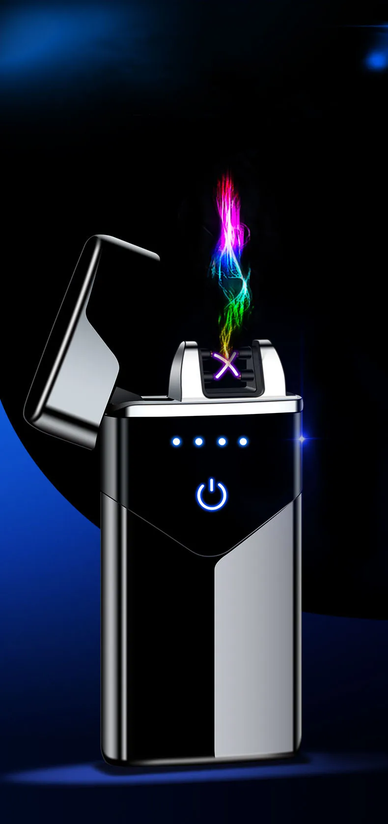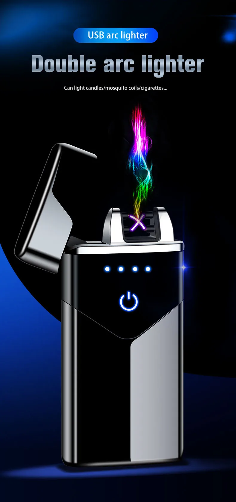 Новинка 2022, металлическая ветрозащитная электрическая зажигалка с двойной дугой светодиодный светодиодным сенсорным экраном, заряжаемая от USB, подарок для мужчин, необычная зажигалка