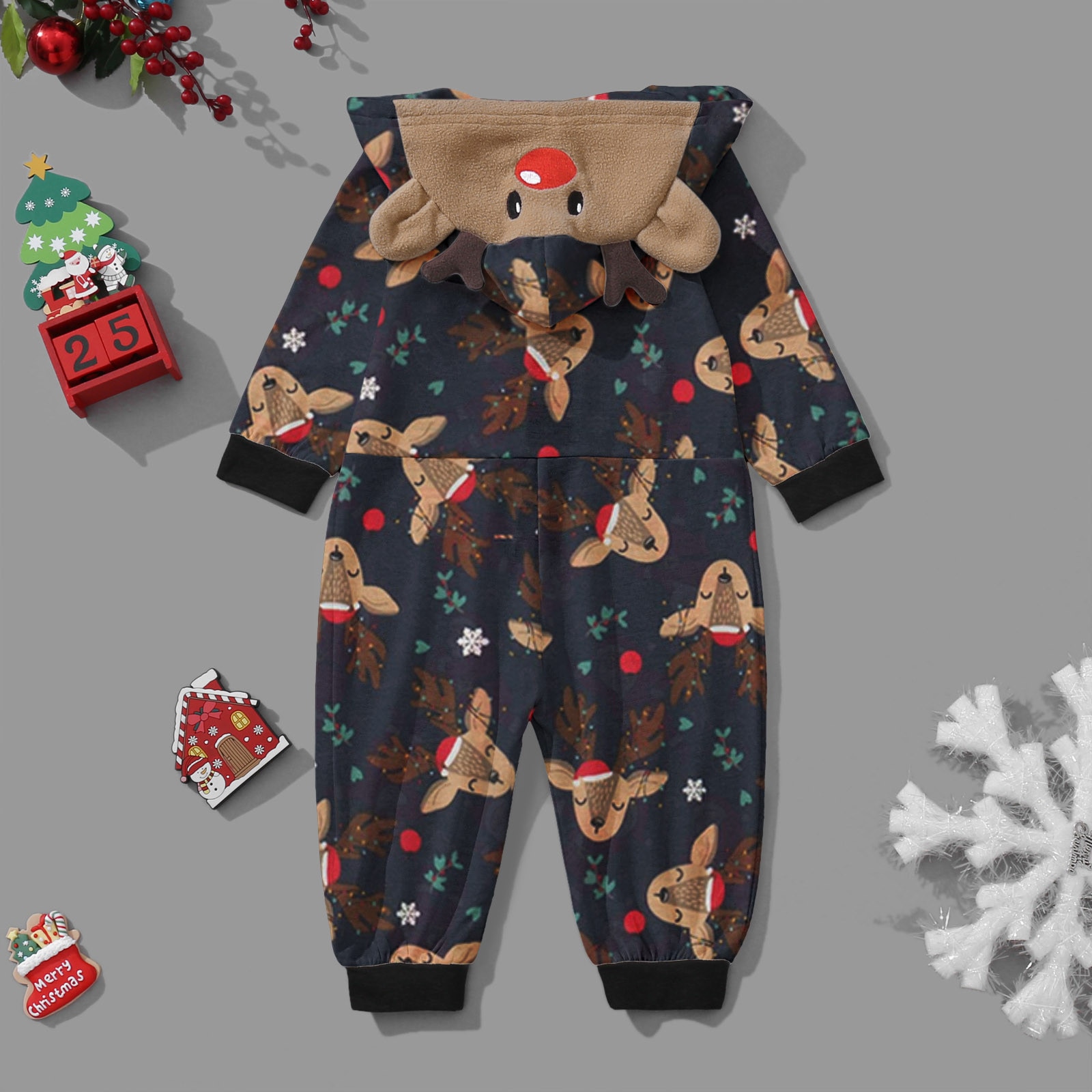 Детский комбинезон на Рождество; Одинаковые пижамы для всей семьи; Милый комбинезон с длинными рукавами и принтом оленя; Мягкая повседневная одежда для отдыха; Одежда для сна