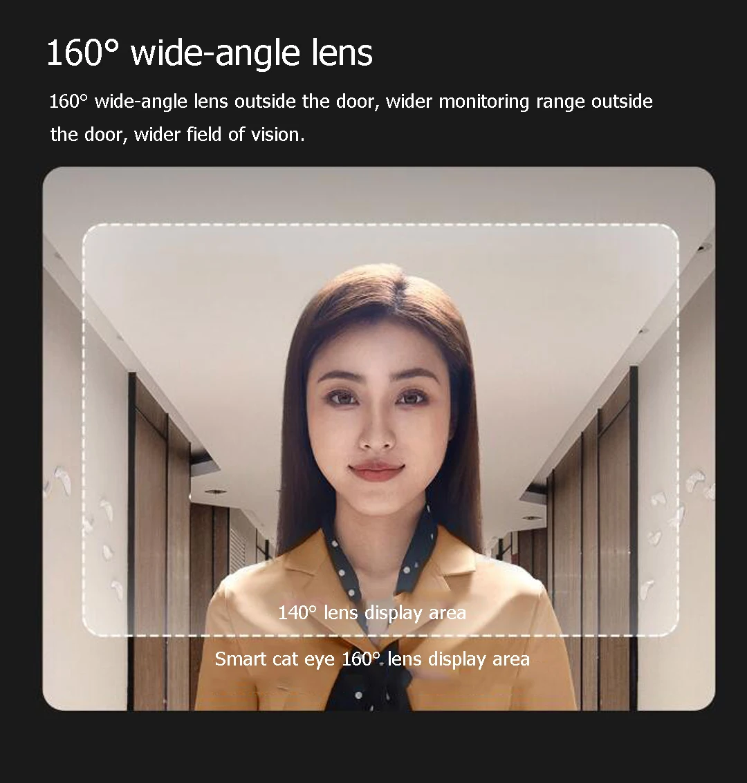 1. Широкий угол 160 °: более широкое поле зрения снаружи двери