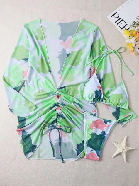 Новинка 2022, женские трусики с завязкой, купальник-бикини из трех предметов