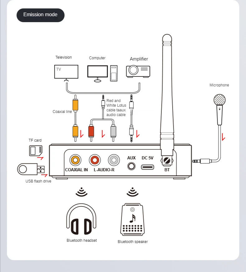 ◆ Поддержка воспроизведения и передачи флэш-диска USB/TF-карты, а также поддержка форматов MP3/WMA/SBC/WAV/DTS/A52/FLAC/AAC/AIF/AMR/APP.