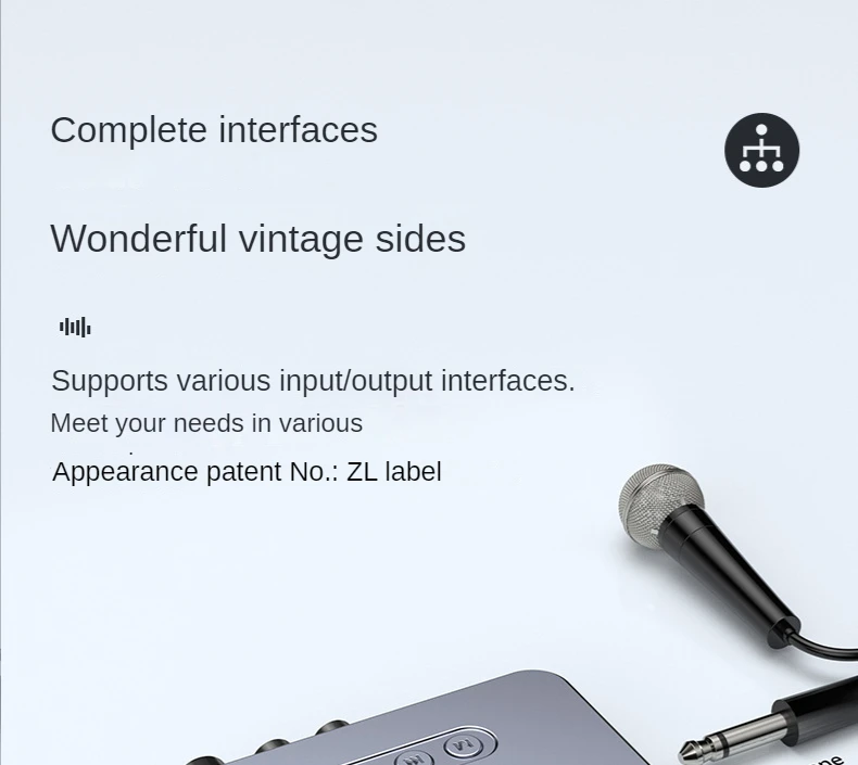 ◆ Встроенный микрофон высокой четкости 6,5 мм, поддерживающий доступ к микрофону для пения, и встроенная защита от воя.