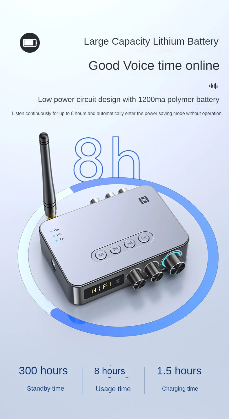 ◆ Встроенный литиевый аккумулятор емкостью 1200 мАч, непрерывное прослушивание музыки около 8 часов, срок службы батареи до 30 дней.