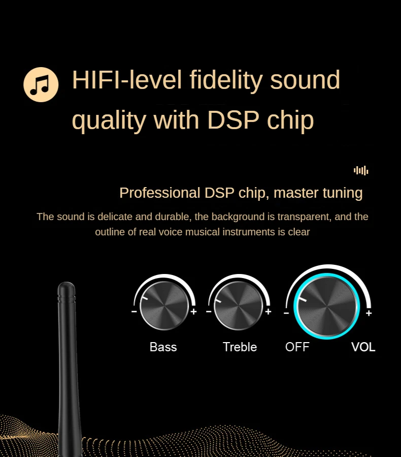 ◆ Встроенный чип декодирования DSP, тяжелый и низкий звуковой эффект, а устройство поддерживает регулировку клавиш высокого/низкого тона.