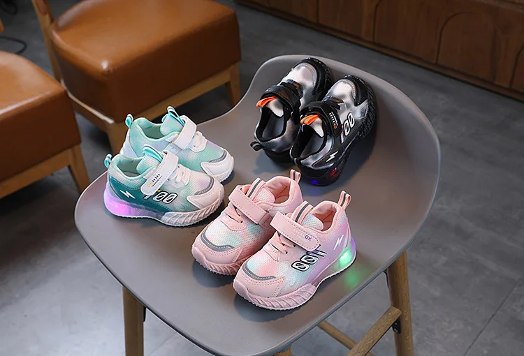 Новинка 2023, детская обувь со светодиодами, весенние теннисные кроссовки для мальчиков и девочек, светящиеся спортивные кроссовки для малышей, детские кроссовки, размер 21-30