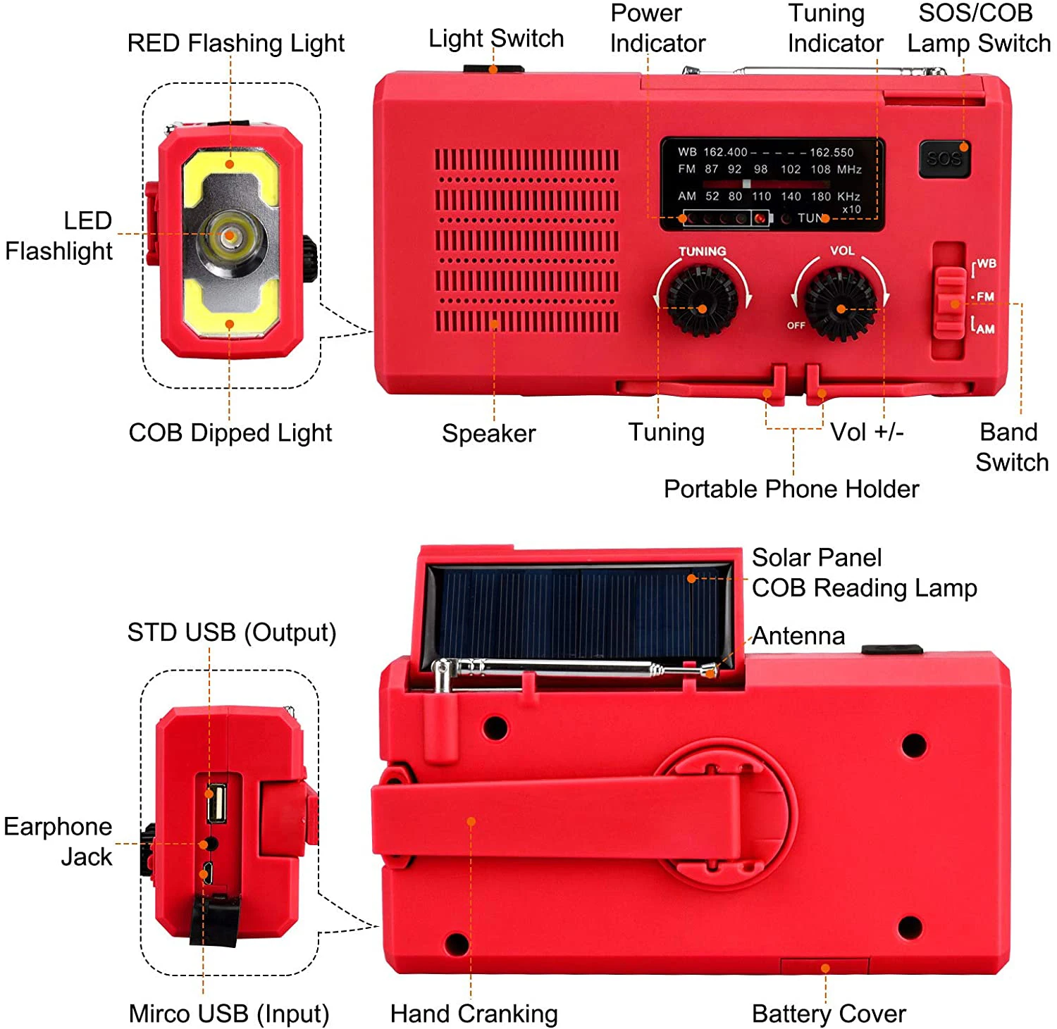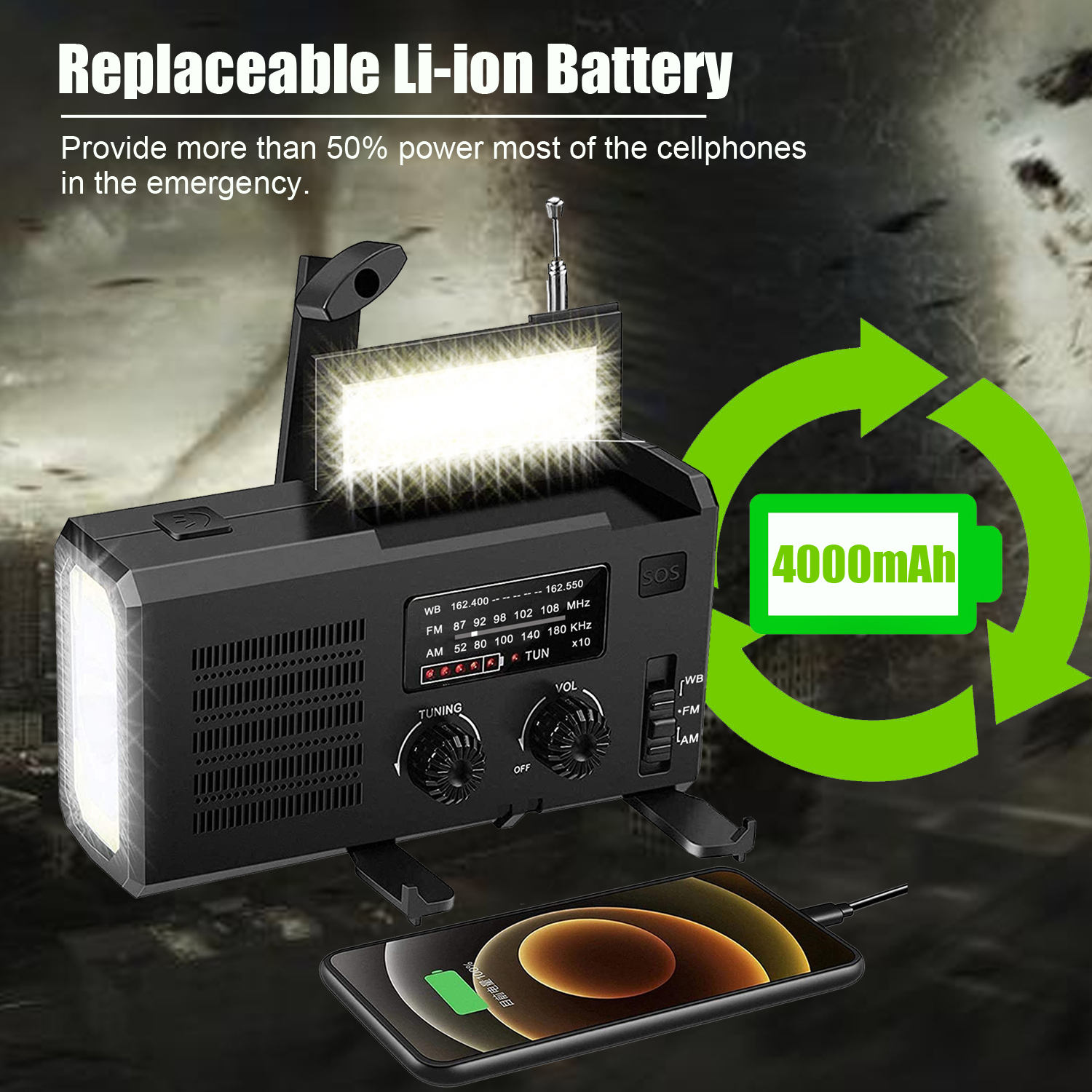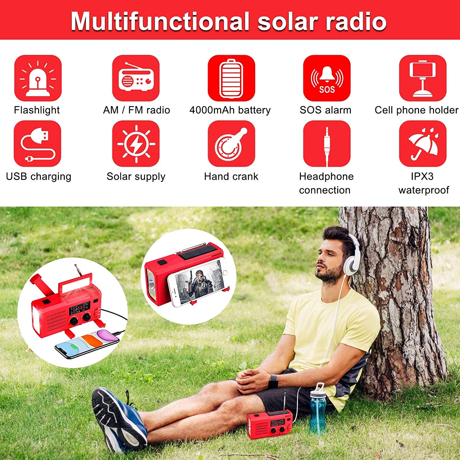 Новинка 2023 г., аварийное радио на солнечной энергии, Ручной Динамо-телефон, зарядное устройство 4000 мАч, генератор фонарика, походная палатка, радио для погоды