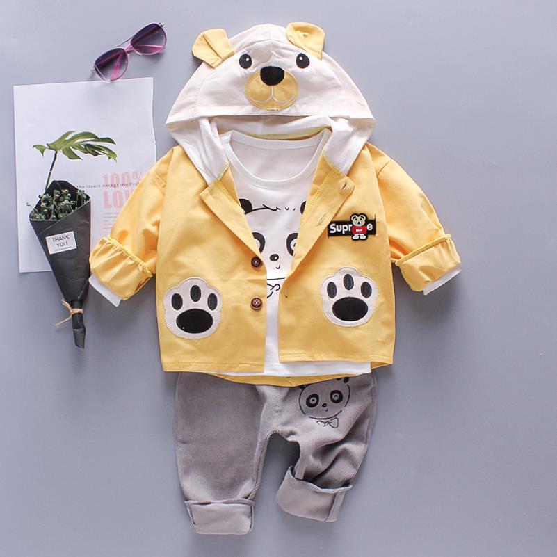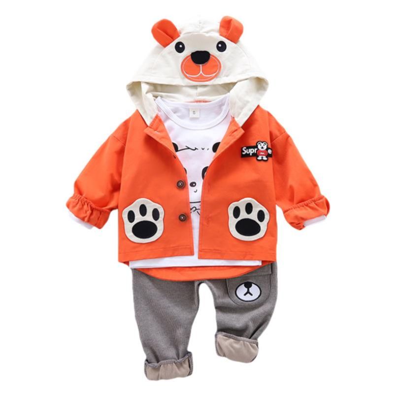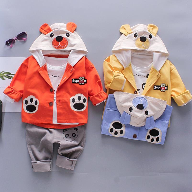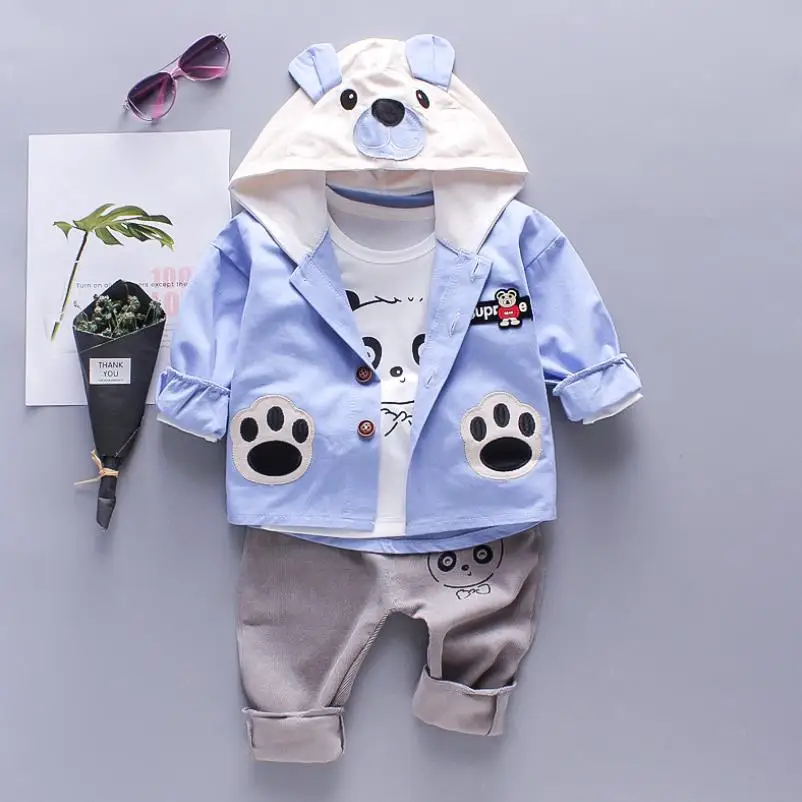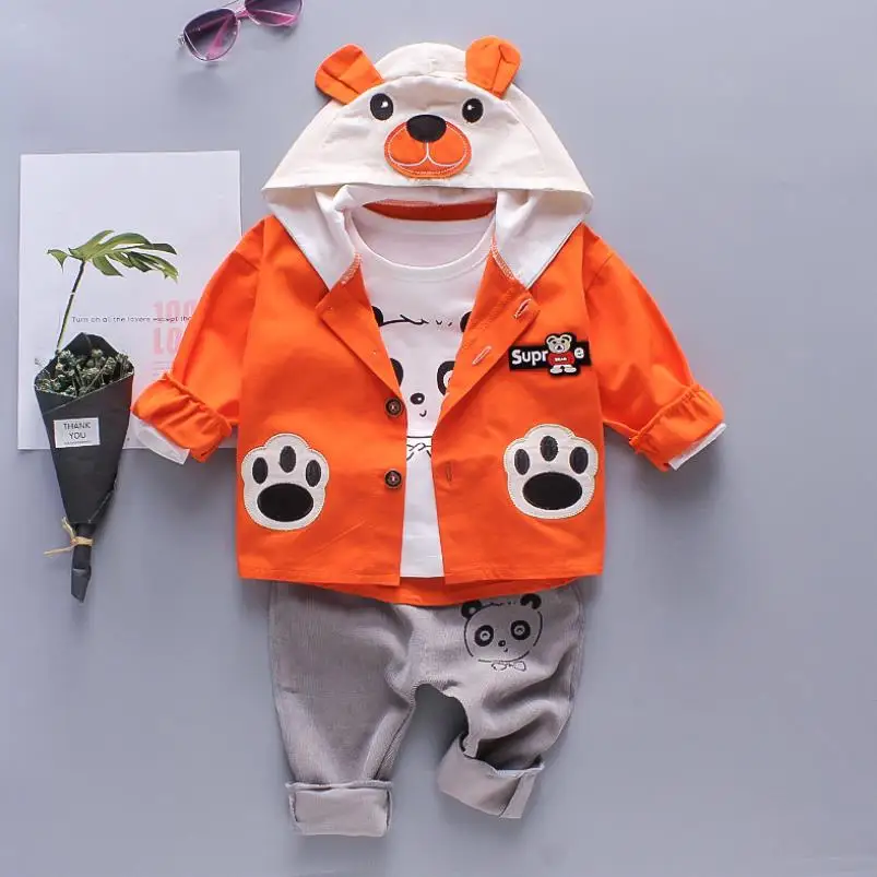 Новинка 2023 года, детский комплект одежды для мальчиков, осенне-зимние комплекты из 3 предметов костюмы с капюшоном и рисунком Осенняя хлопковая одежда для маленьких мальчиков, От 0 до 4 лет