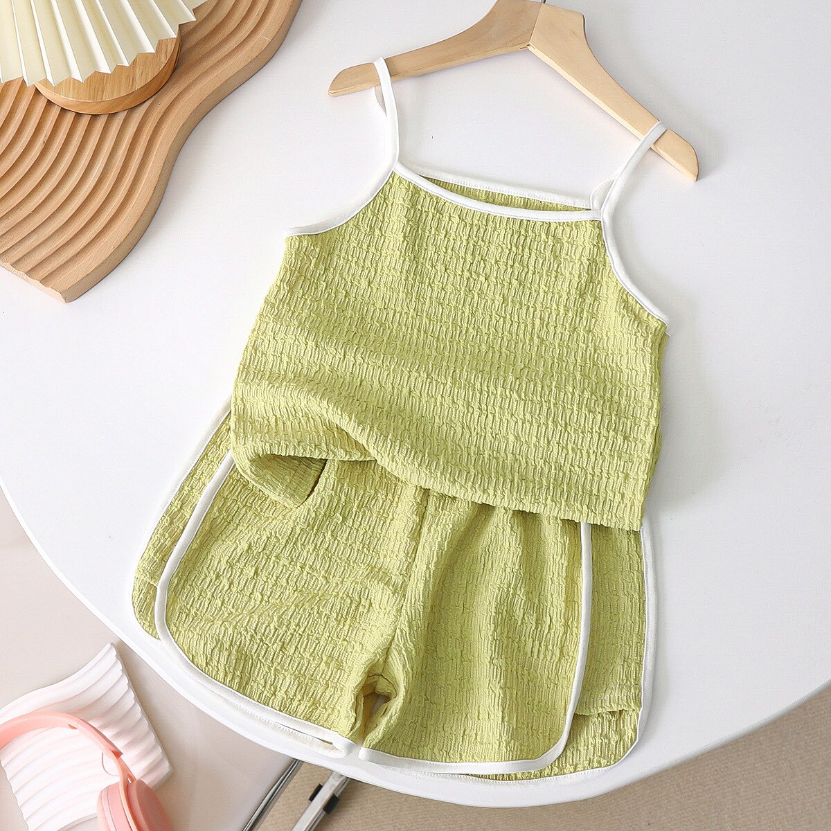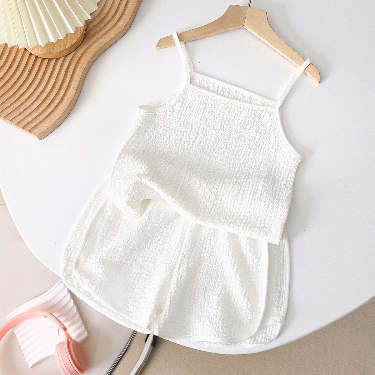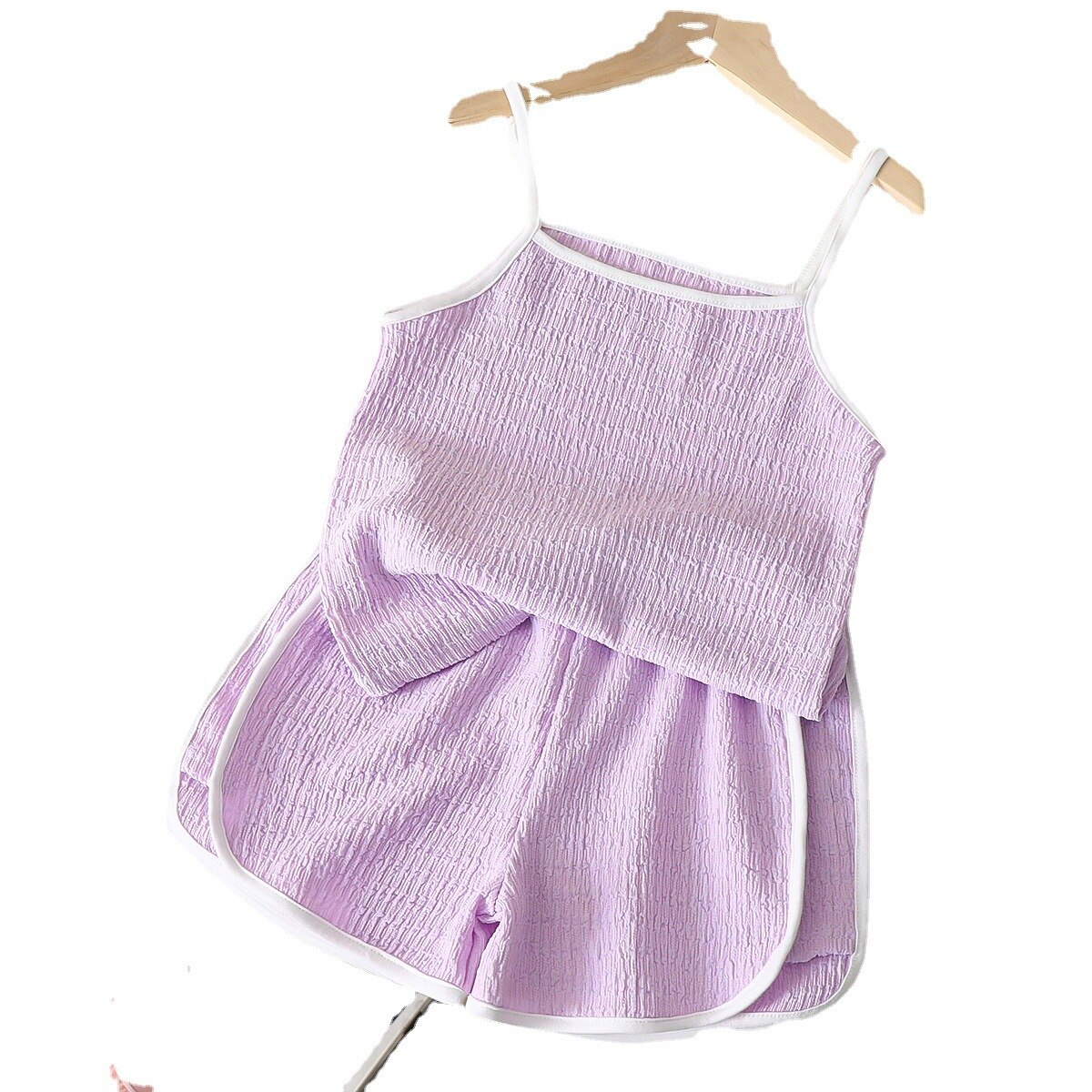 Новинка 2023, комплект из кофты для девочек, летняя однотонная детская майка и шорты, Повседневная милая детская одежда из двух предметов, домашняя одежда для девочек