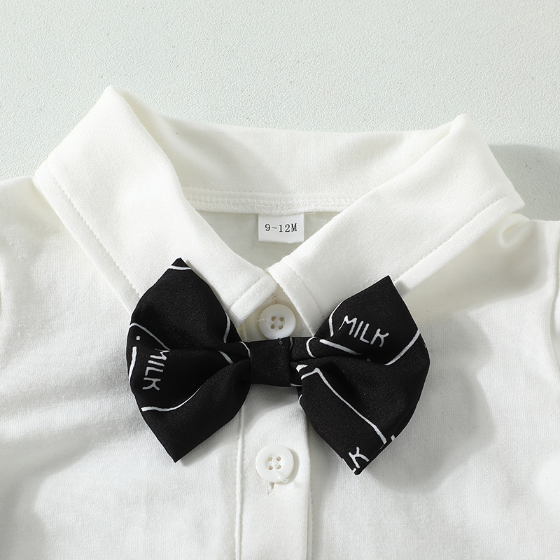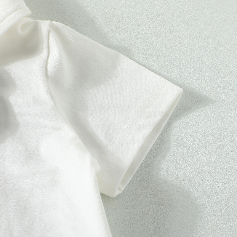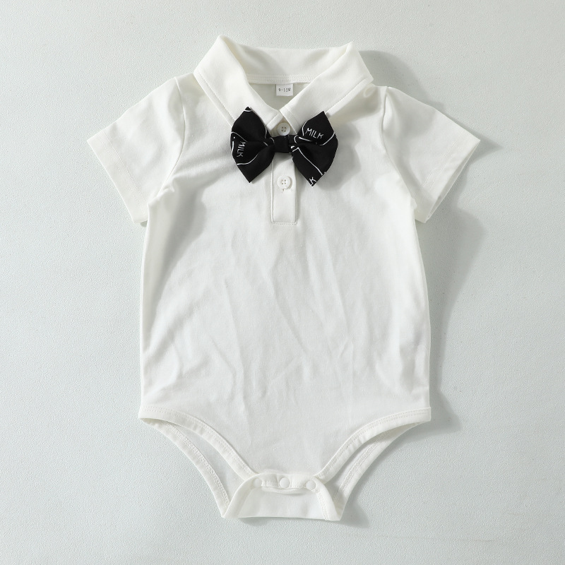 Новинка 2023, комплекты детской одежды, белые Дизайнерские повседневные комплекты из 2 предметов с коротким рукавом и отложным воротником и бантом для девочек
