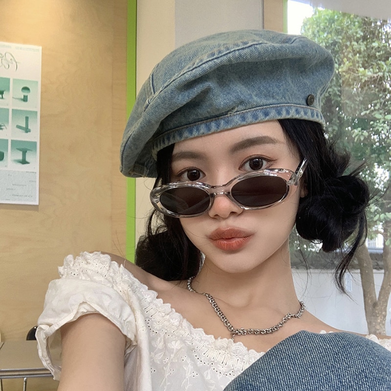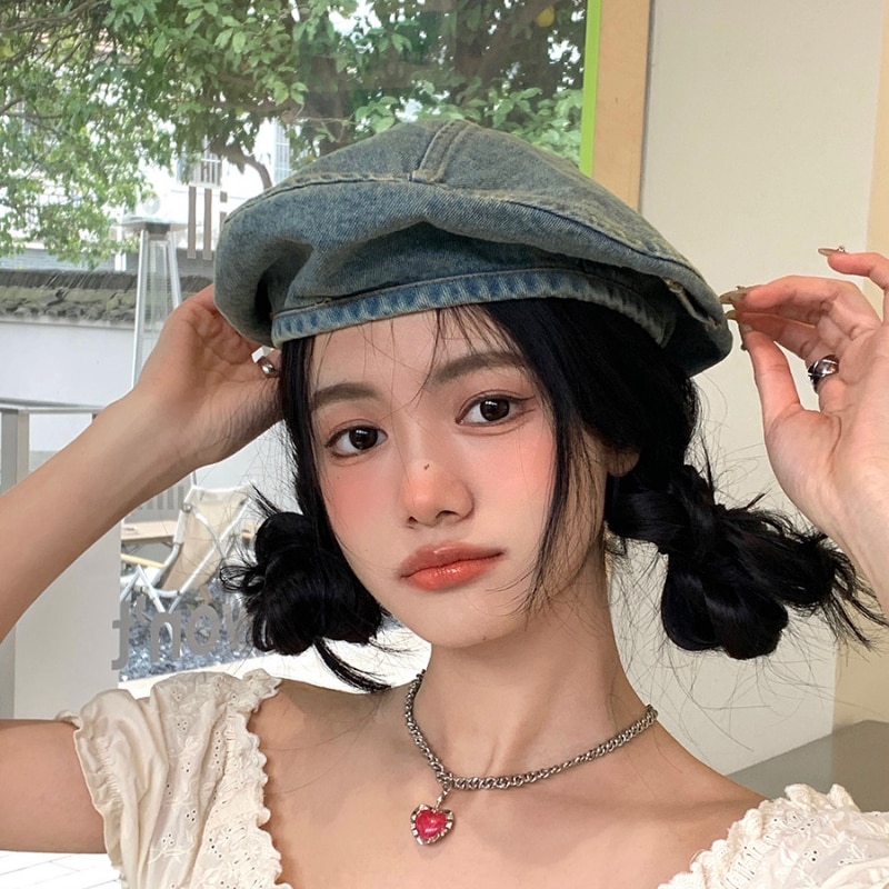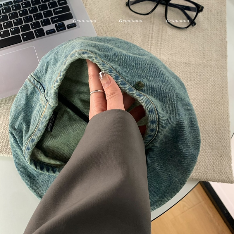 Новинка 2023, корейский джинсовый берет, Женская Весенняя промытая Ретро шапка художника, универсальная восьмиугольная шапка с большой окружностью головы сплошного цвета