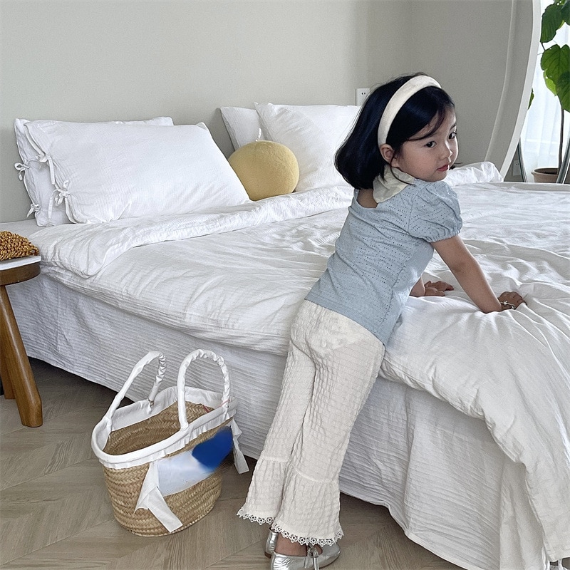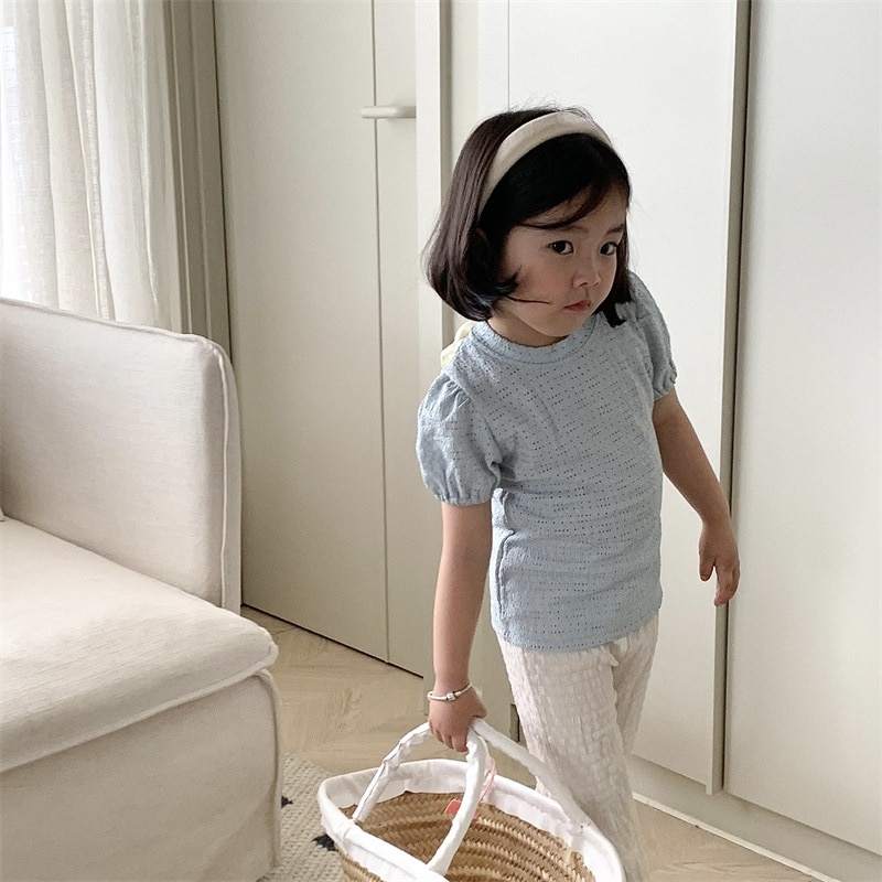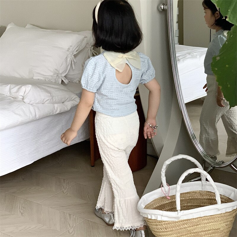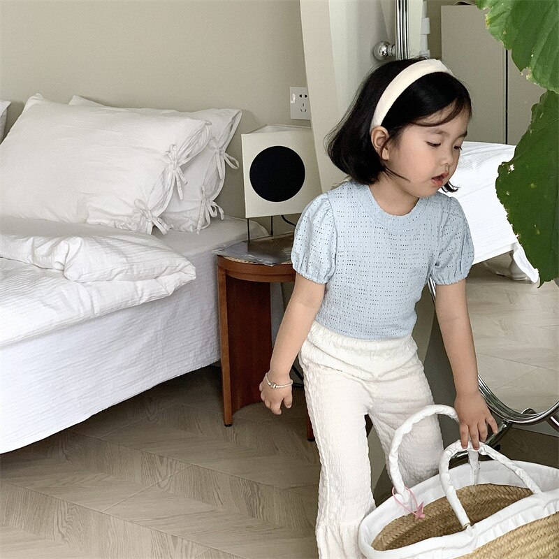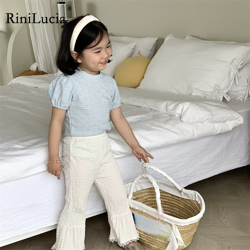Новинка 2023, летняя Милая одежда для малышей, комплект одежды для маленьких девочек, однотонный топ с коротким рукавом и штаны, Детский костюм, наряд, костюмы, комплекты