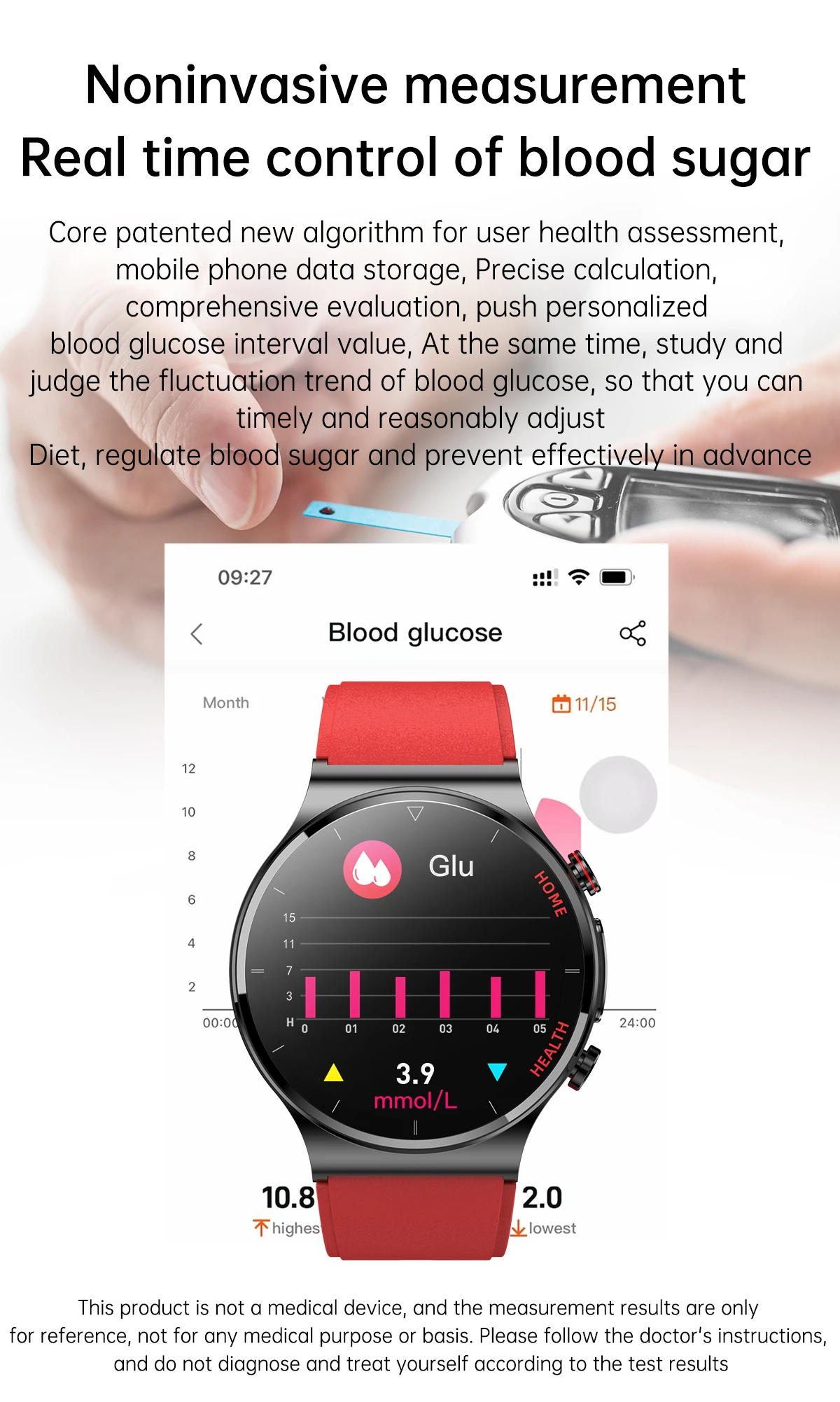 Новинка 2023, мужские умные часы для здоровья с лазерной поддержкой и терапией, умные часы с сенсорным экраном 1,32 дюйма и диагностикой здоровья