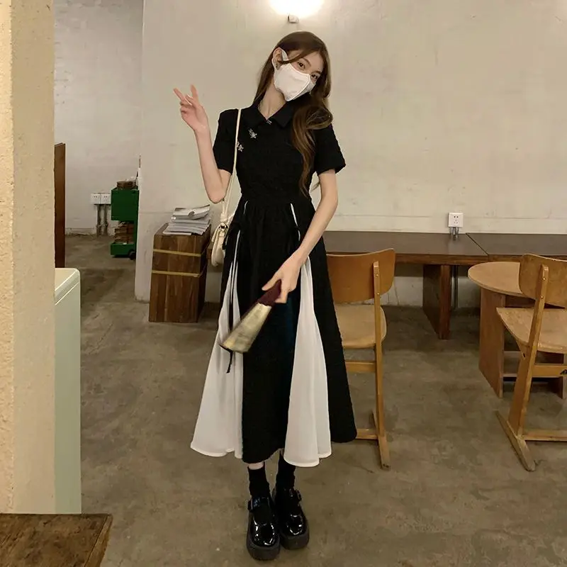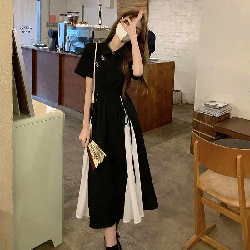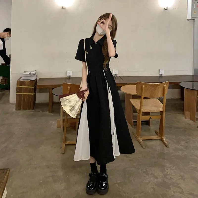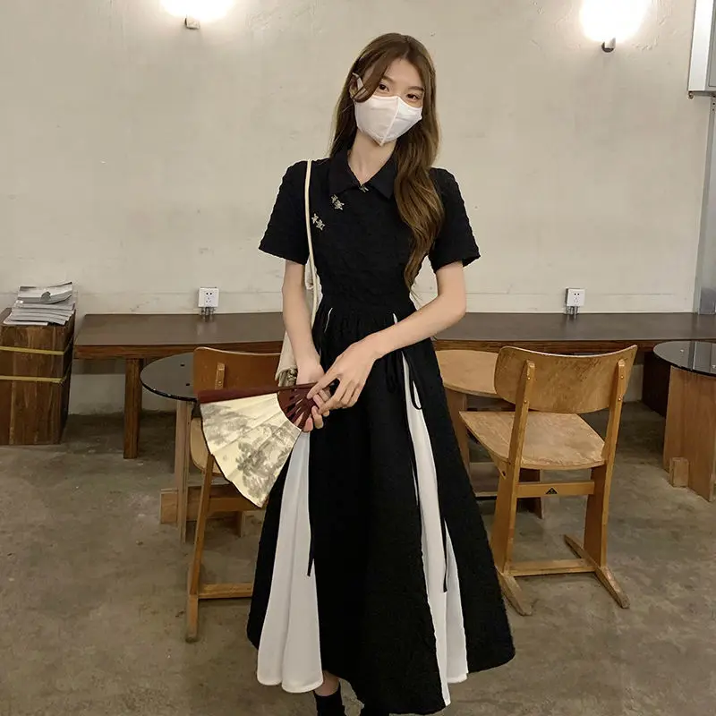 Новинка 2023, платье в китайском стиле, Элегантное черно-белое платье-Ципао в стиле пэчворк, Молодежные платья для девочек, длинные платья, Ципао