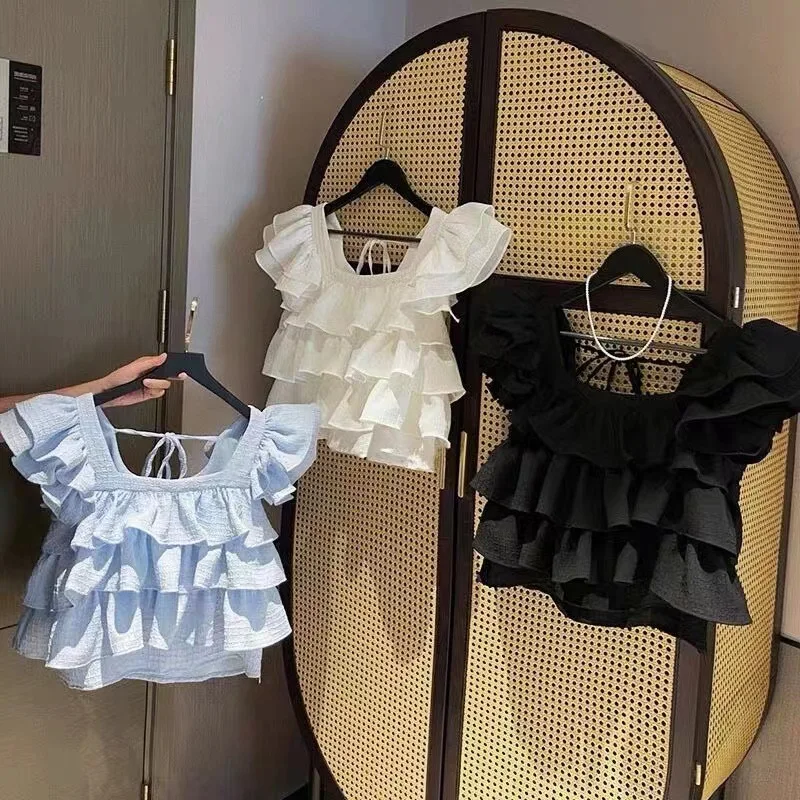 Новинка 2023, рубашки для девочек, детские топы с оборками и рукавами «летучая мышь», блузка в Корейском стиле для больших девочек, рубашки