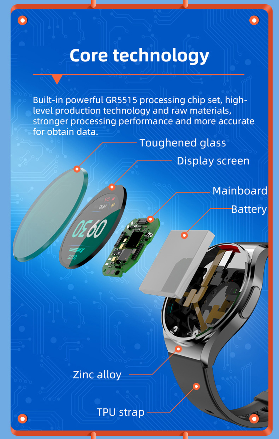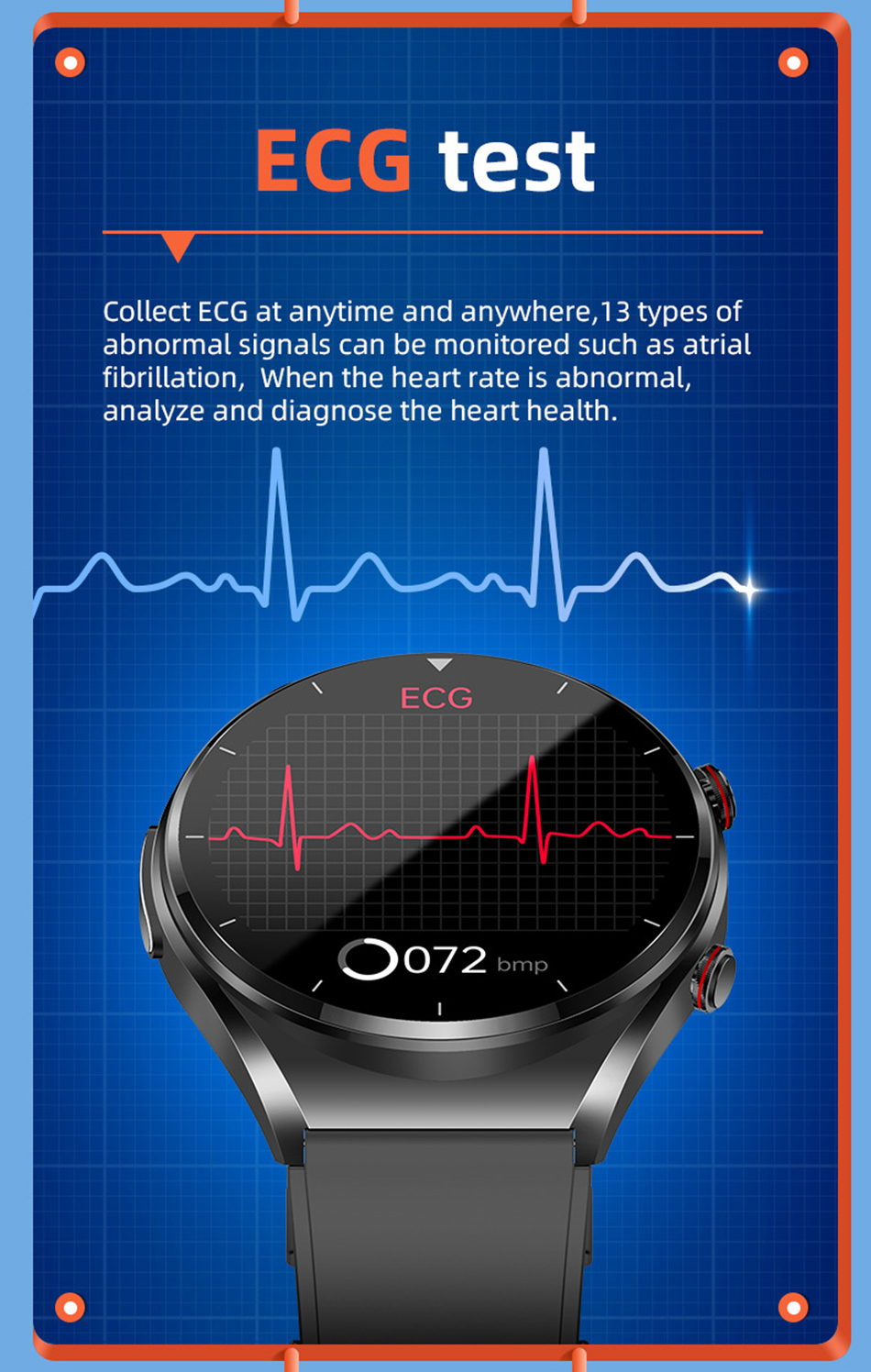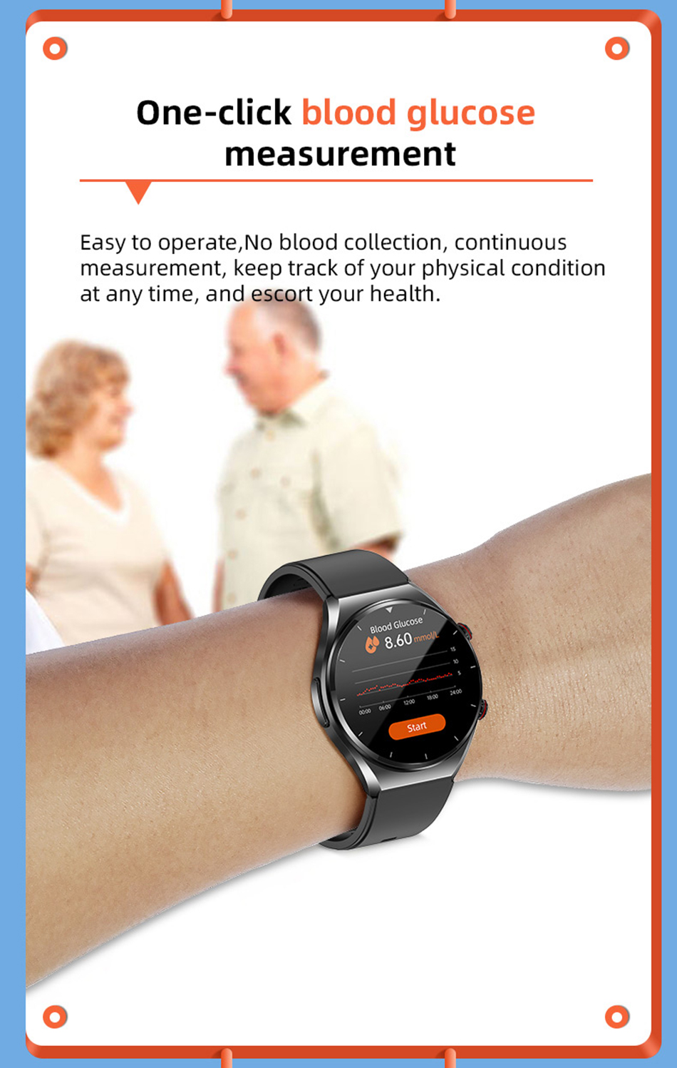 Интеллектуальные часы здоровья глюкозы в крови ЭКГ, 1,30-дюймовый сенсорный экран 360*360 HD, ЭКГ (высокая частота 512 Гц), мониторинг ЭКГ, неинвазивный уровень глюкозы в крови, мониторинг сердечного ритма, мониторинг артериального давления, мониторинг кислорода в крови, режим нескольких упражнений, пользовательский циферблат, онлайн-мульти-циферблат, запись упражнений. Мониторинг сна, напоминание о звонках и сообщениях, Сверхнизкое энергопотребление и длительный срок службы. Корпус из металлического сплава, бесшумный будильник, удаленное фото, управление музыкой, напоминание о сидении, напоминание о питье воды, отображение погоды, обратный отсчет, встряхивание для фотосъемки, поиск по мобильному телефону.